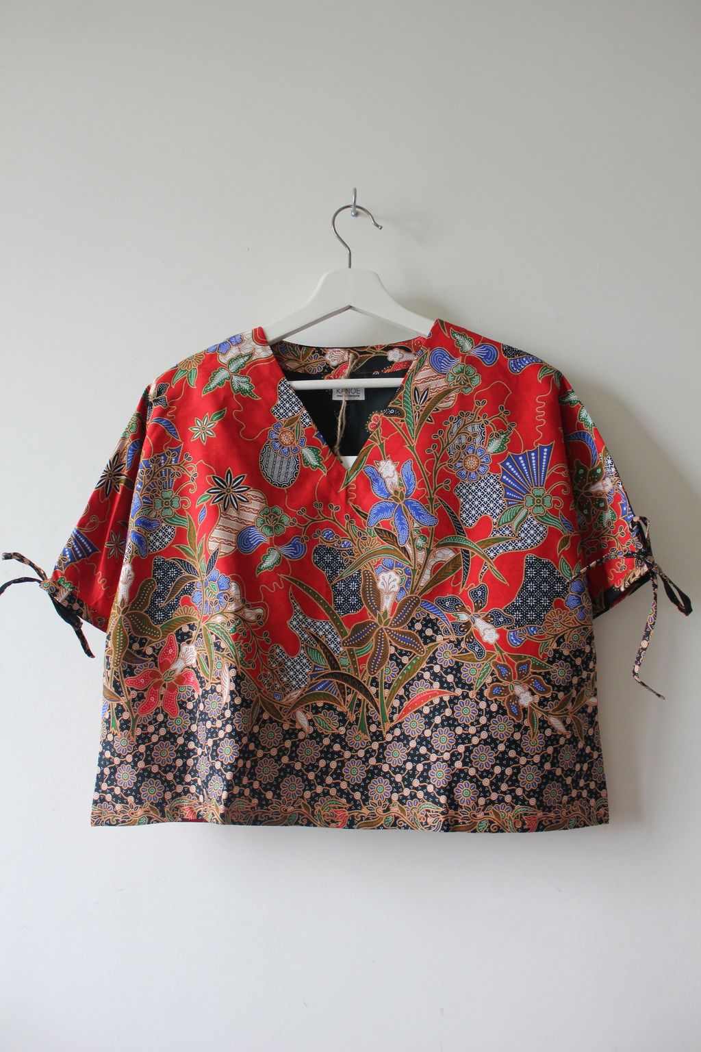 The simple V - neck batik top that suits most figures very well, 100% cotton batik, with sleeves that fall on the shoulders. Wear this with a plain bottom. Both work and play friendly, hey hey hey!