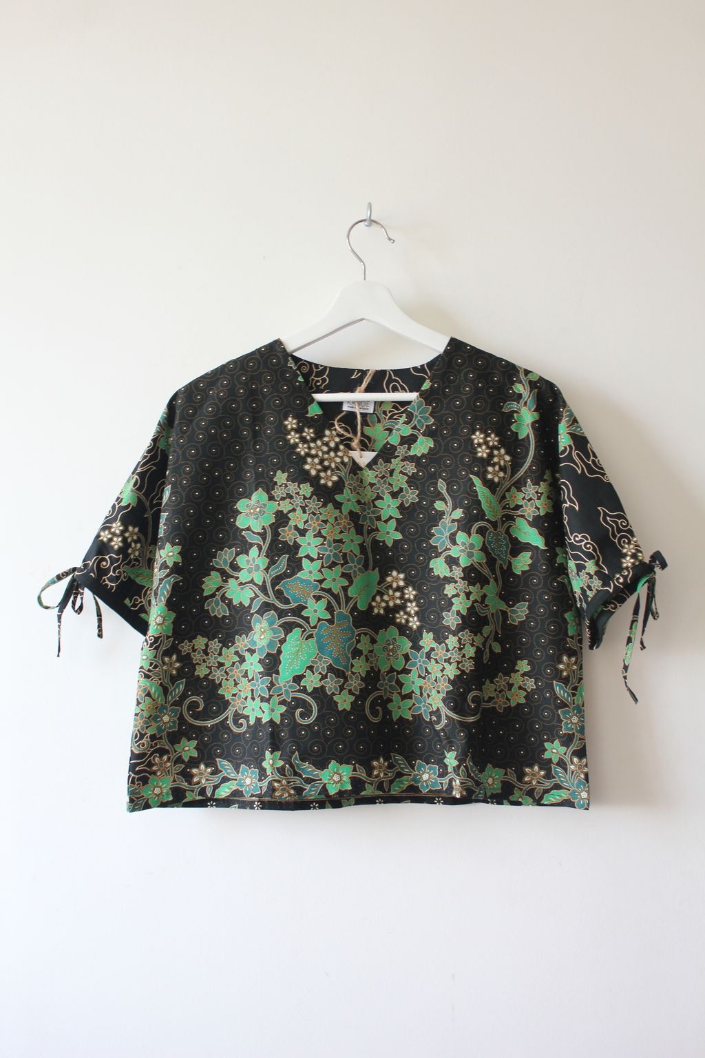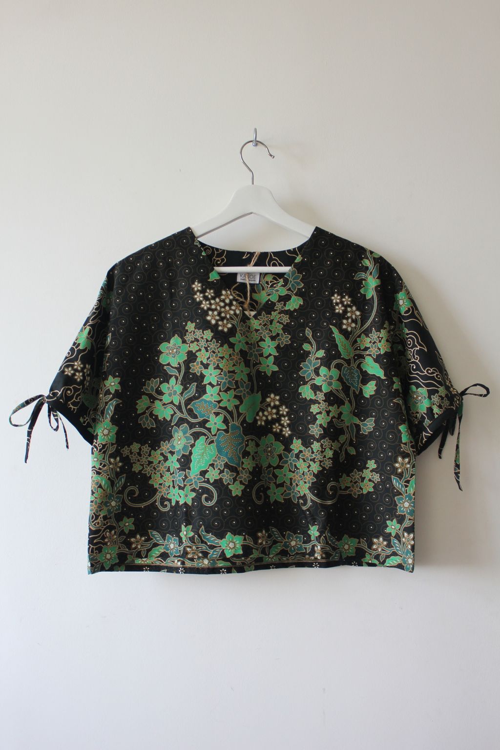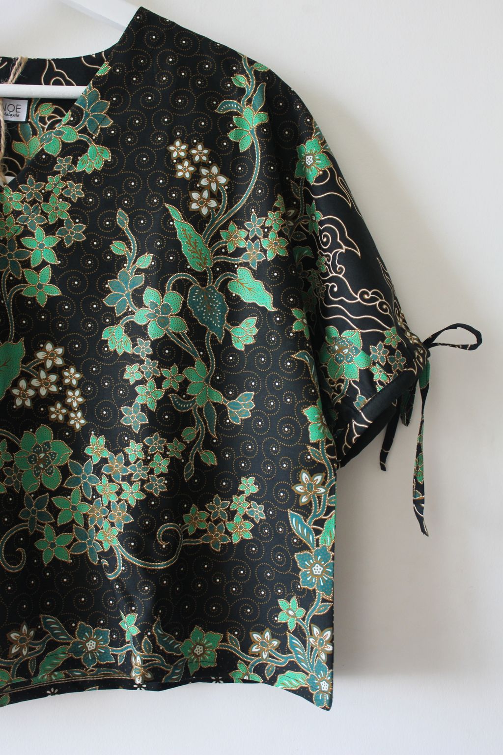 The simple V - neck batik top that suits most figures very well, 100% cotton batik, with sleeves that fall on the shoulders. Wear this with a plain bottom. Both work and play friendly, hey hey hey!