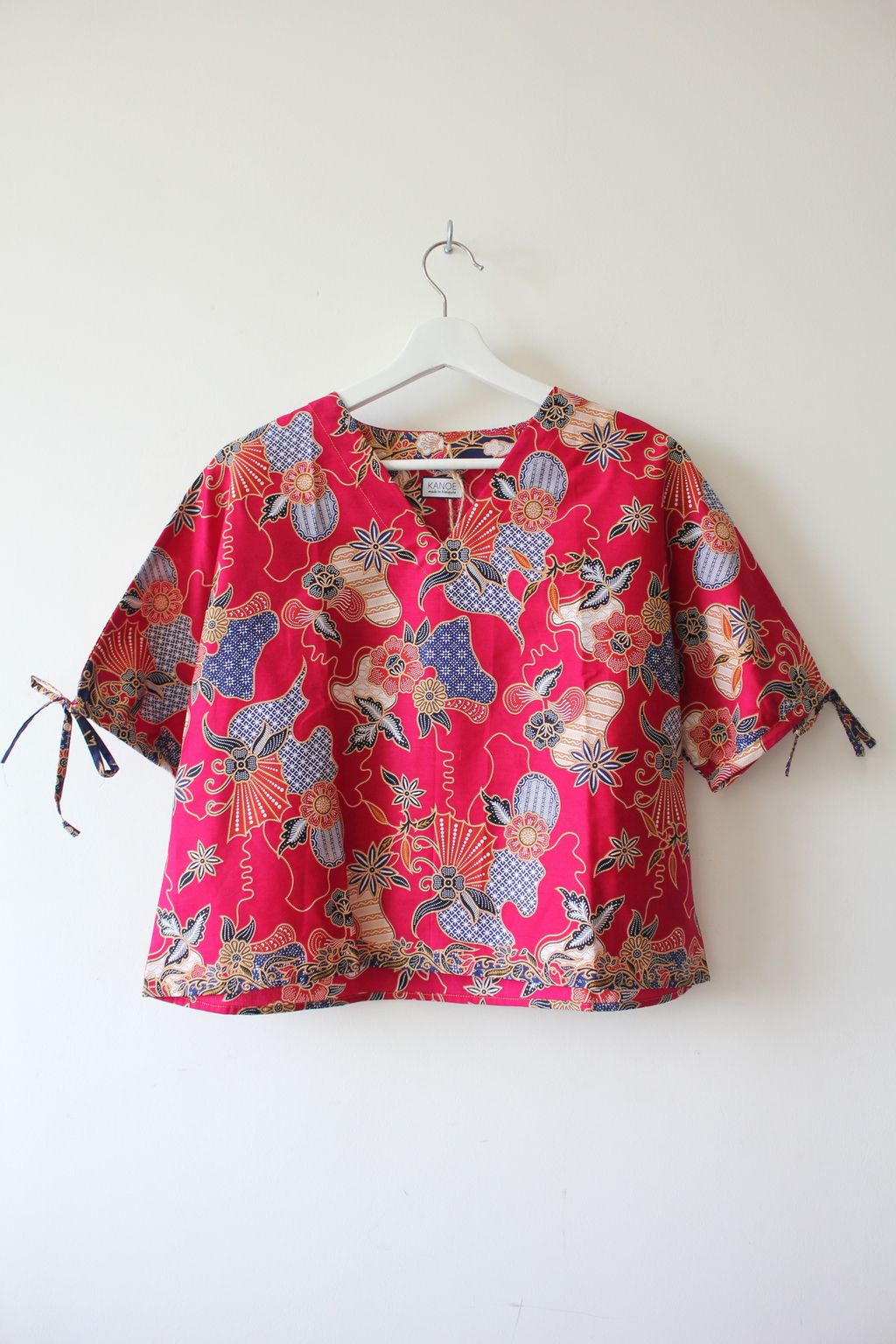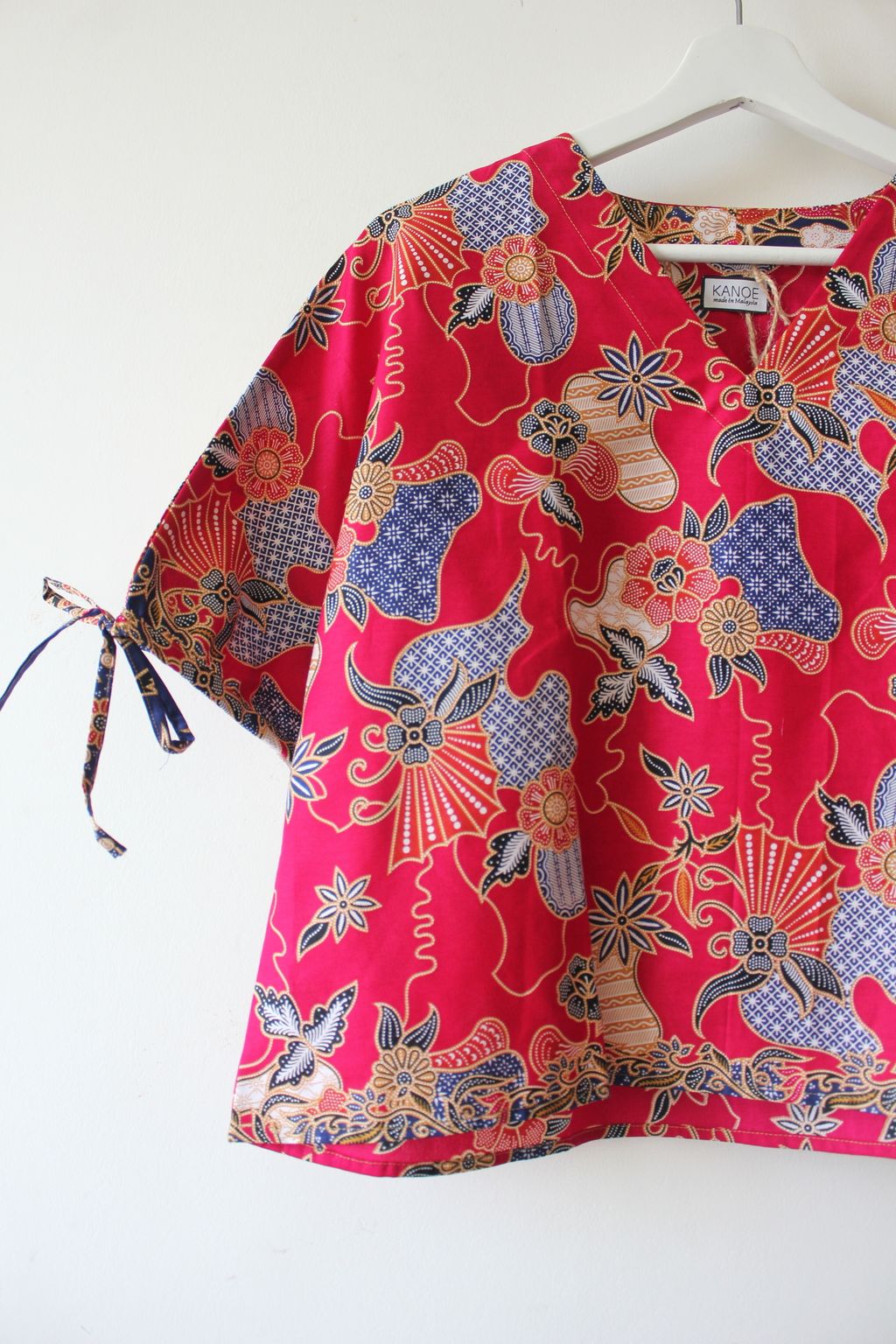 The simple V - neck batik top that suits most figures very well, 100% cotton batik, with sleeves that fall on the shoulders. Wear this with a plain bottom. Both work and play friendly, hey hey hey!