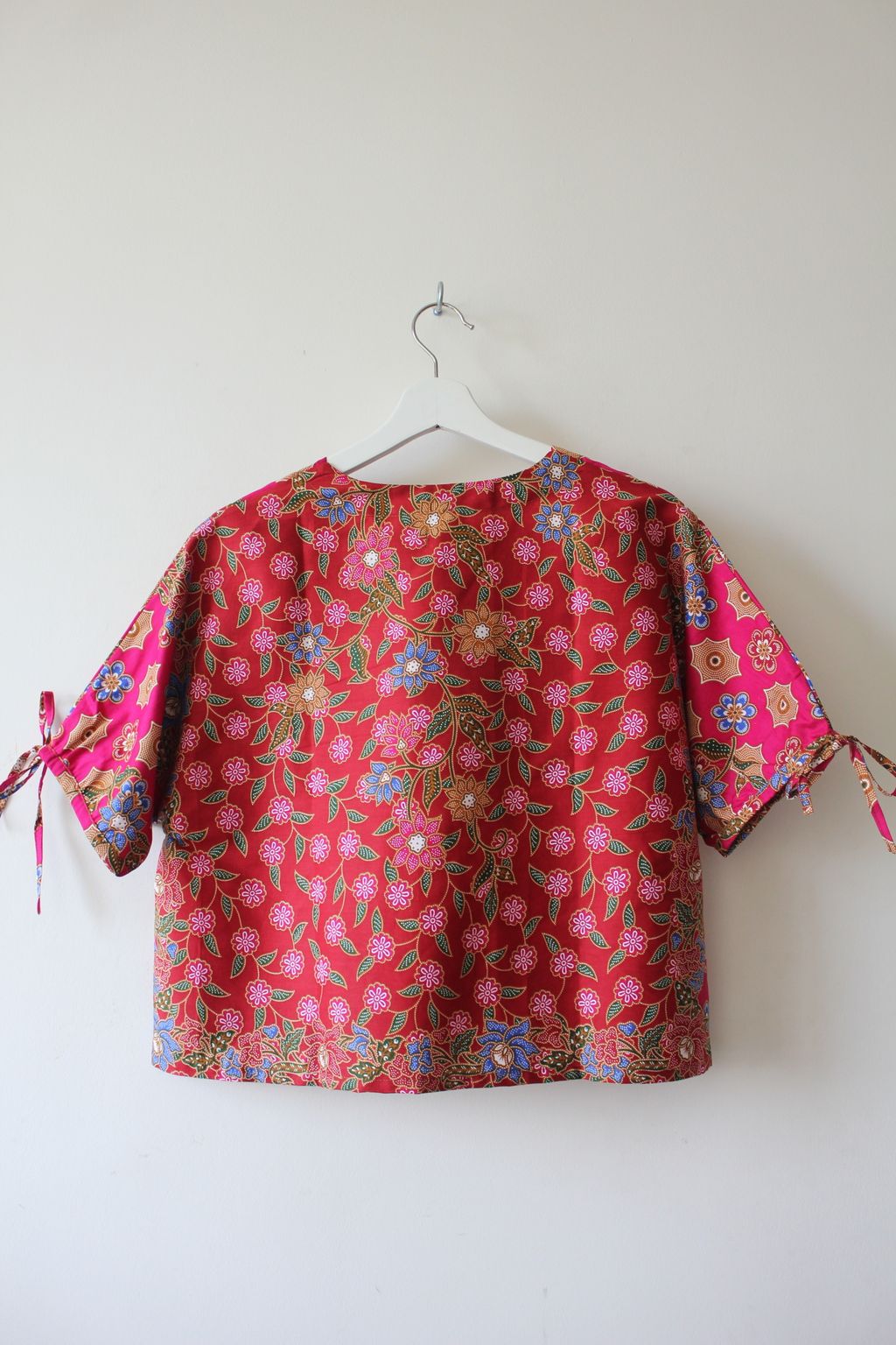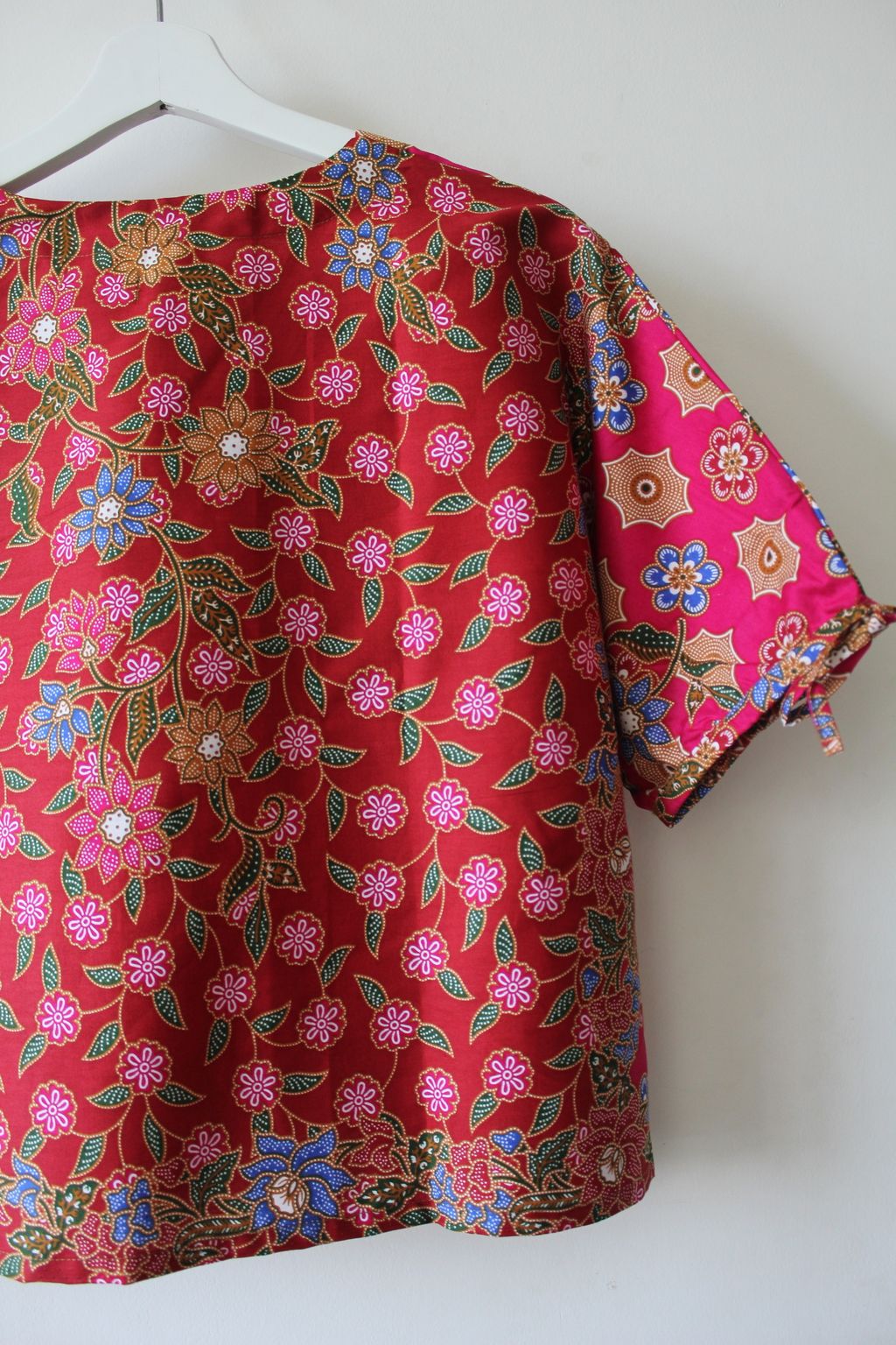 The simple V - neck batik top that suits most figures very well, 100% cotton batik, with sleeves that fall on the shoulders. Wear this with a plain bottom. Both work and play friendly, hey hey hey!