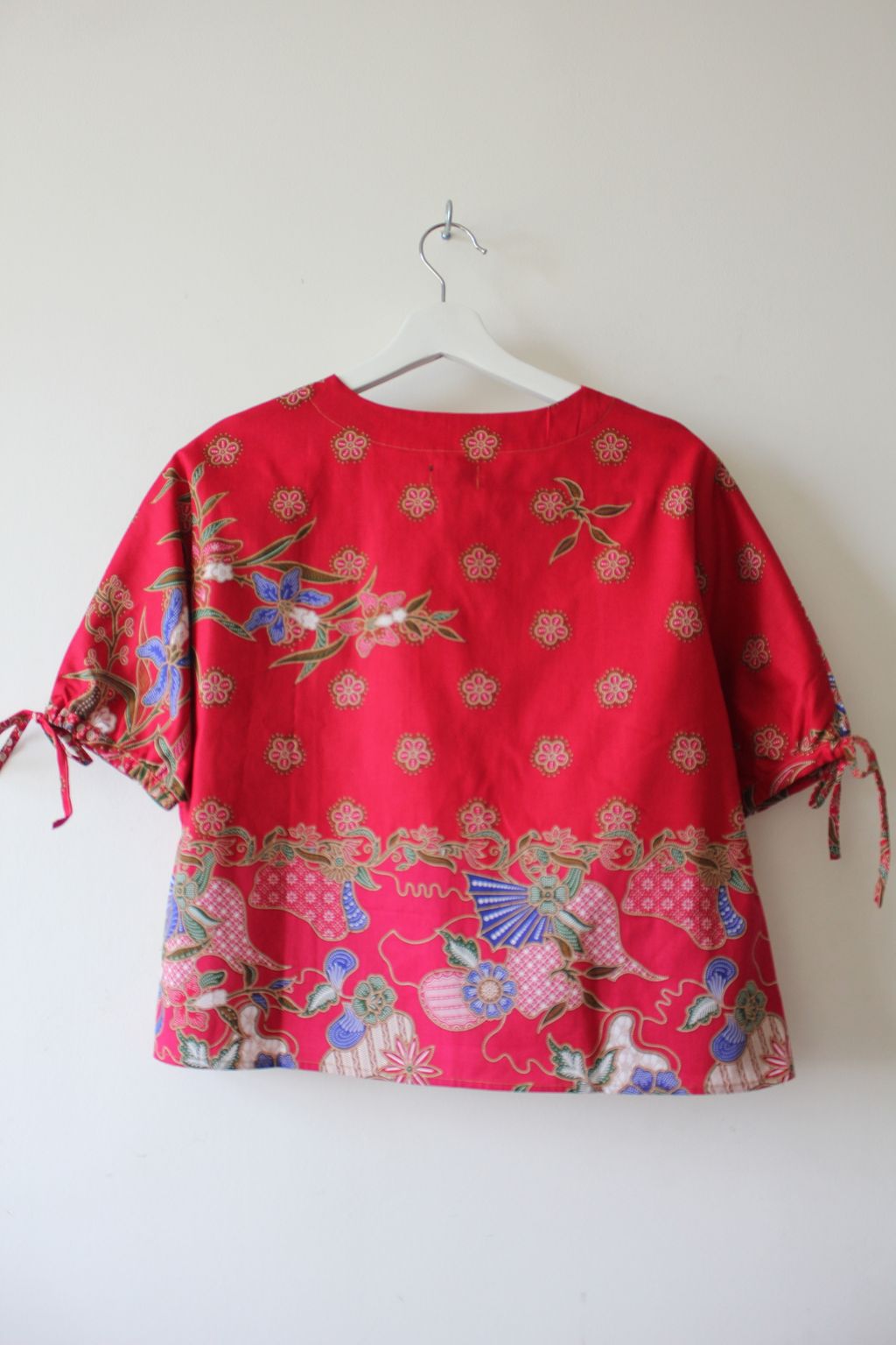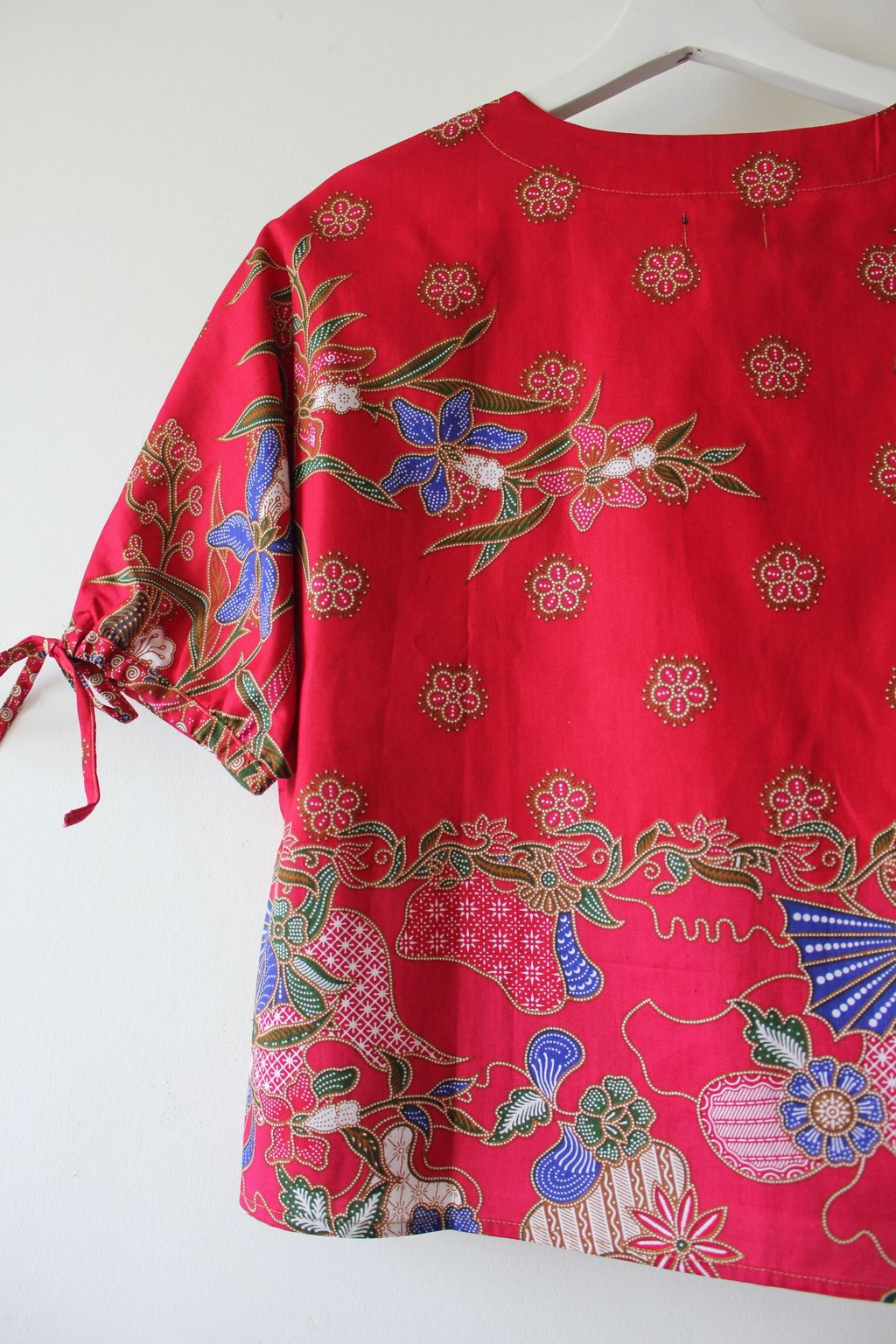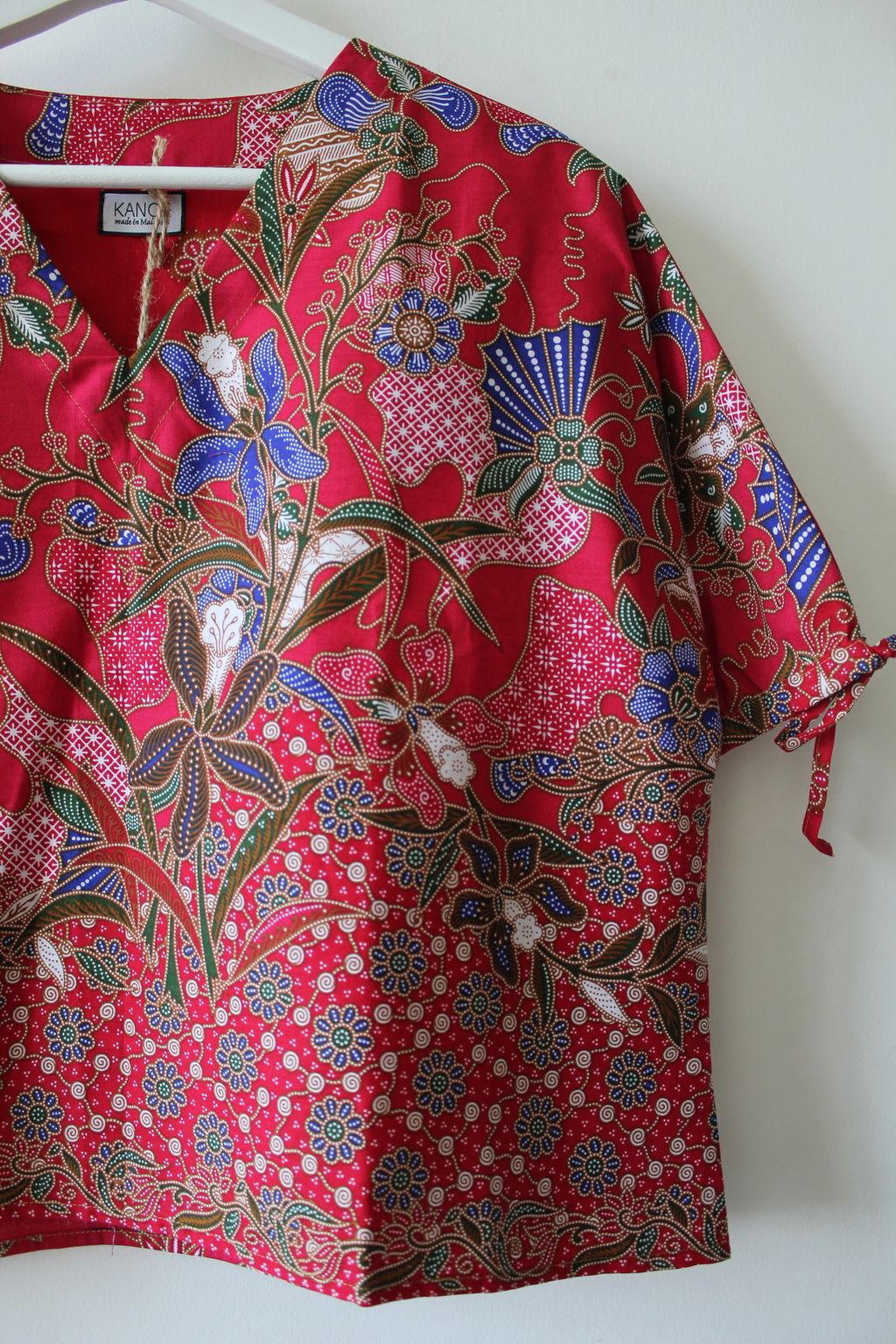 The simple V - neck batik top that suits most figures very well, 100% cotton batik, with sleeves that fall on the shoulders. Wear this with a plain bottom. Both work and play friendly, hey hey hey!