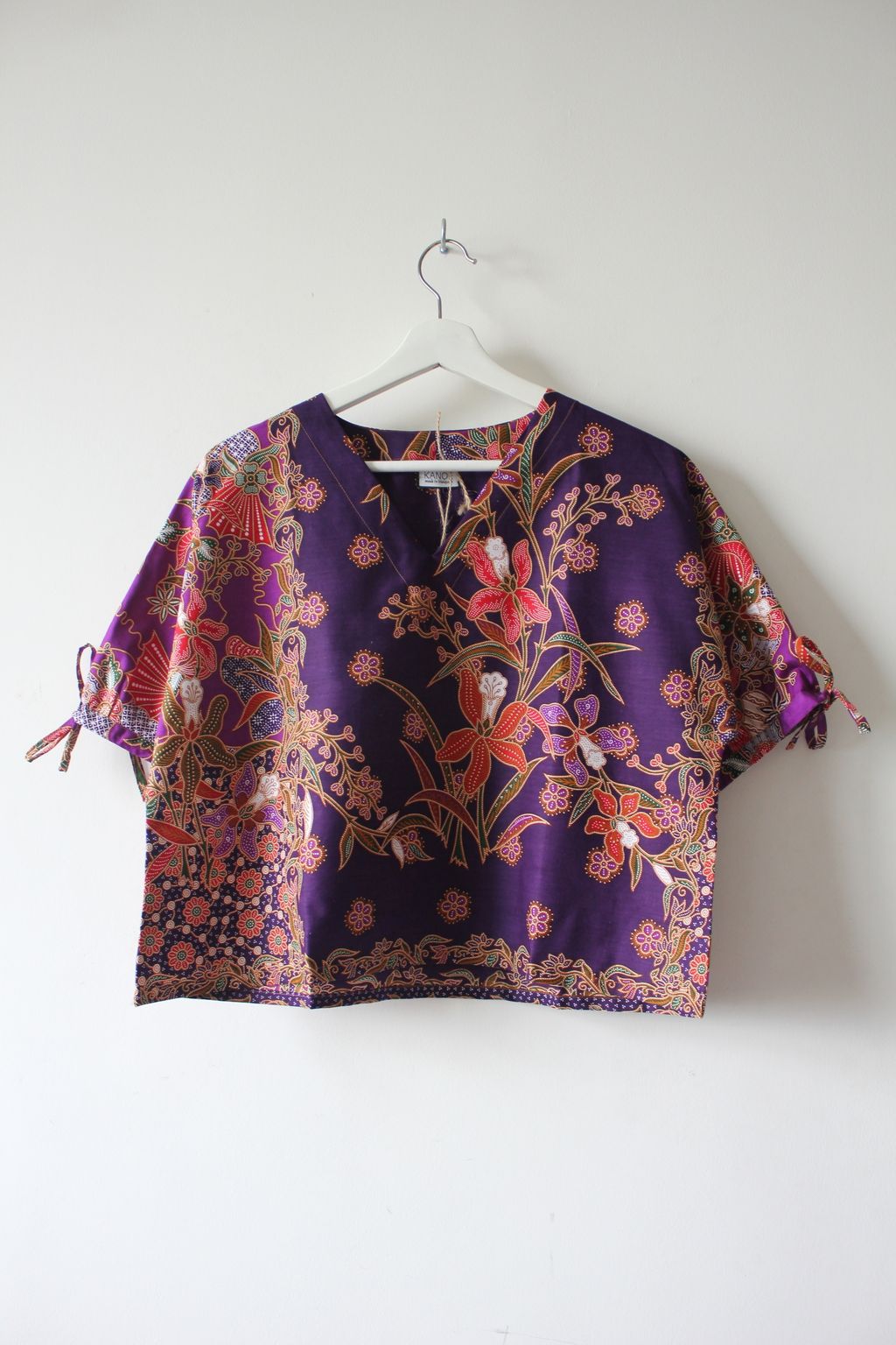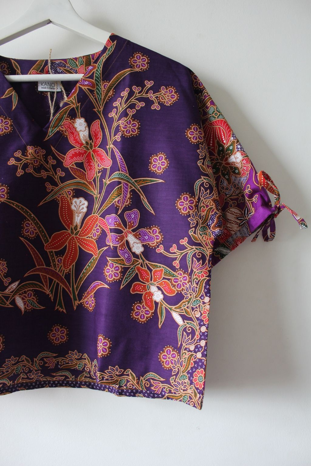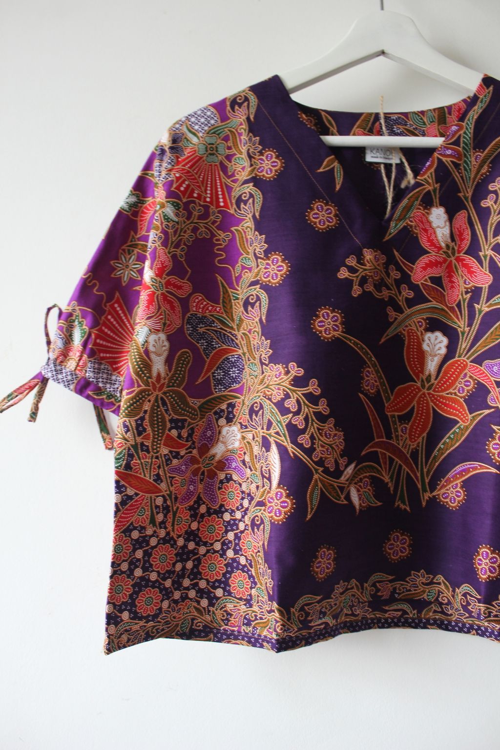 The simple V - neck batik top that suits most figures very well, 100% cotton batik, with sleeves that fall on the shoulders. Wear this with a plain bottom. Both work and play friendly, hey hey hey!