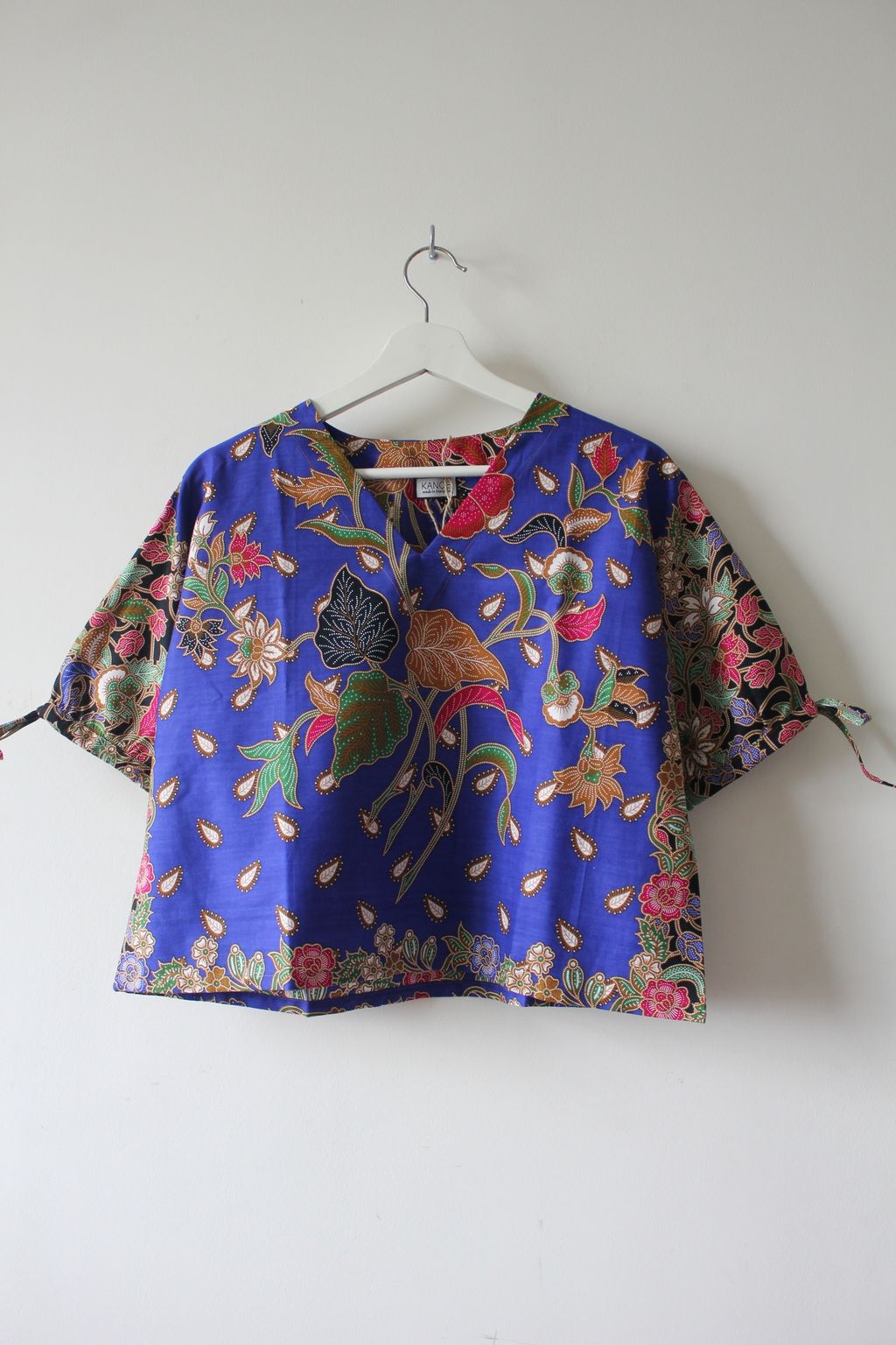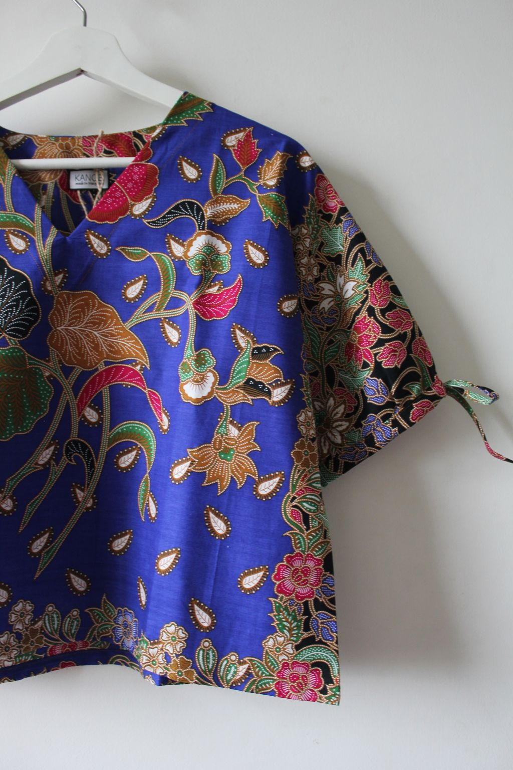 The simple V - neck batik top that suits most figures very well, 100% cotton batik, with sleeves that fall on the shoulders. Wear this with a plain bottom. Both work and play friendly, hey hey hey!