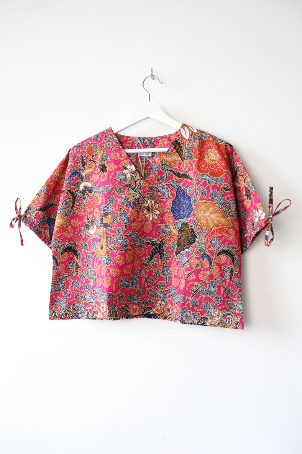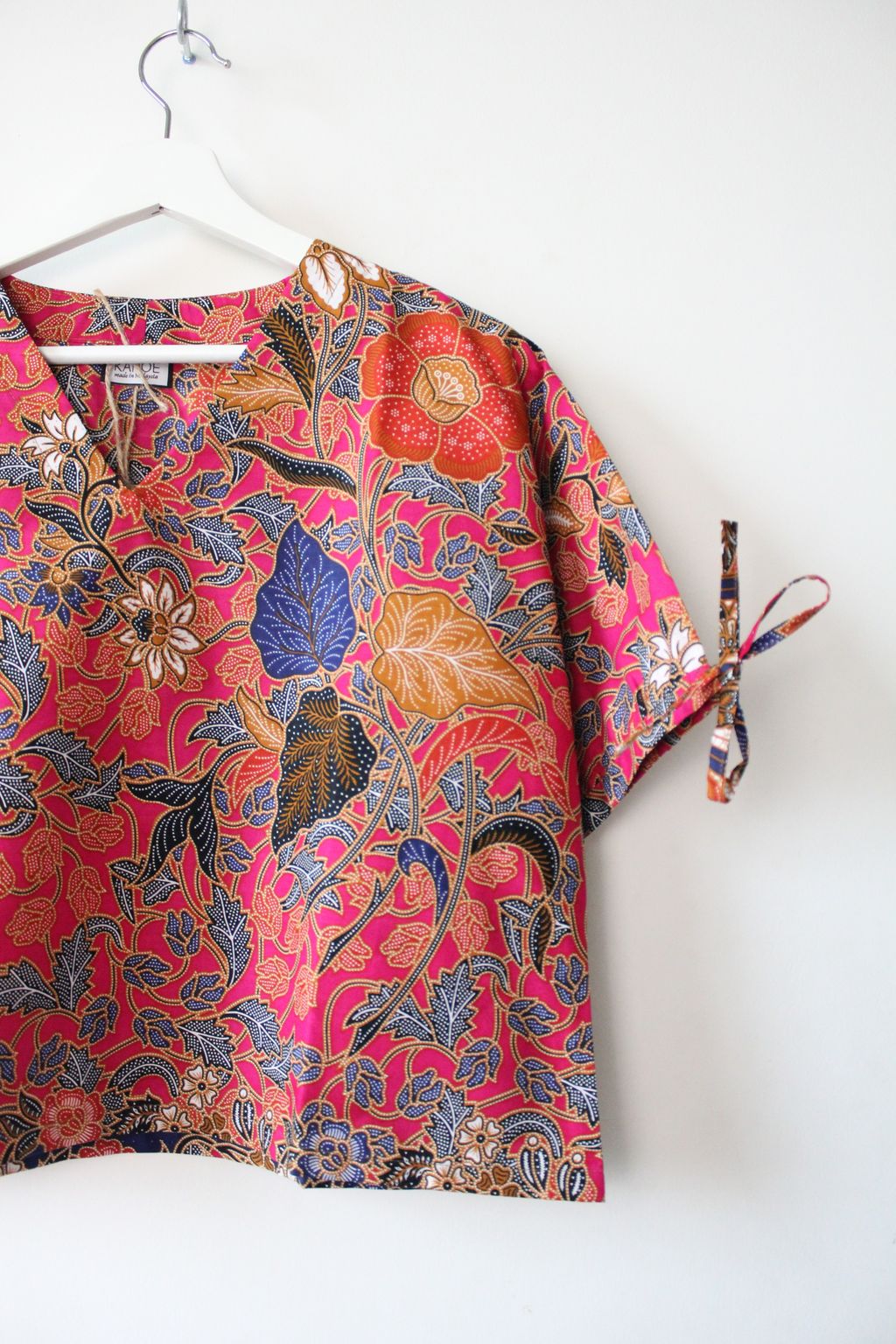 The simple V - neck batik top that suits most figures very well, 100% cotton batik, with sleeves that fall on the shoulders. Wear this with a plain bottom. Both work and play friendly, hey hey hey!