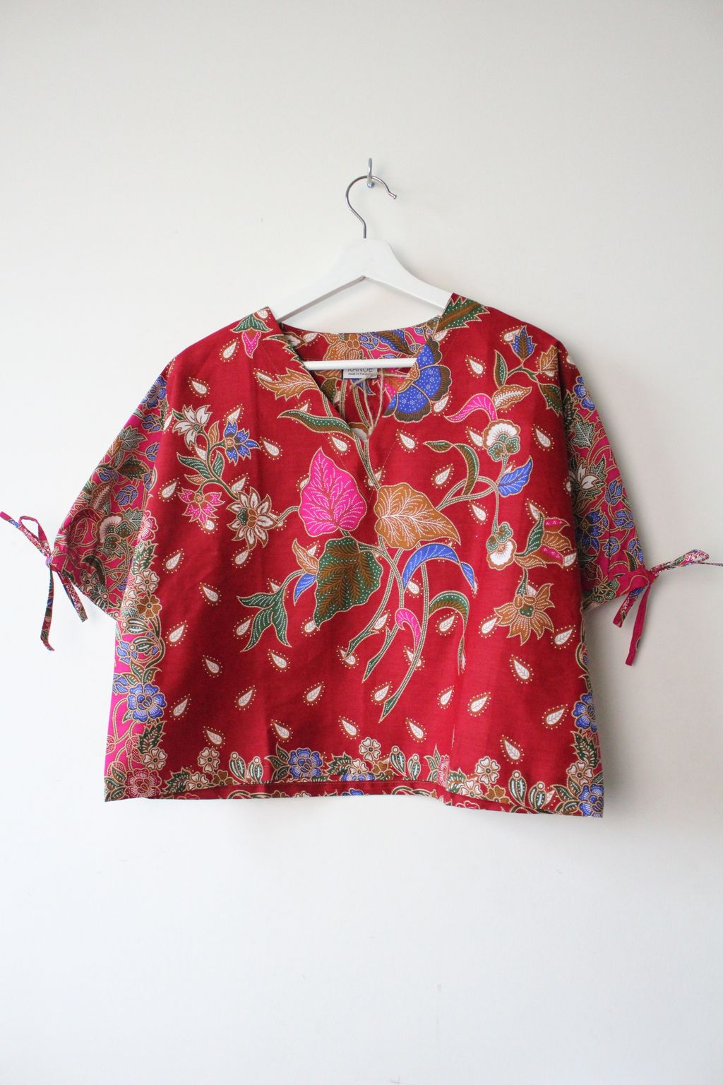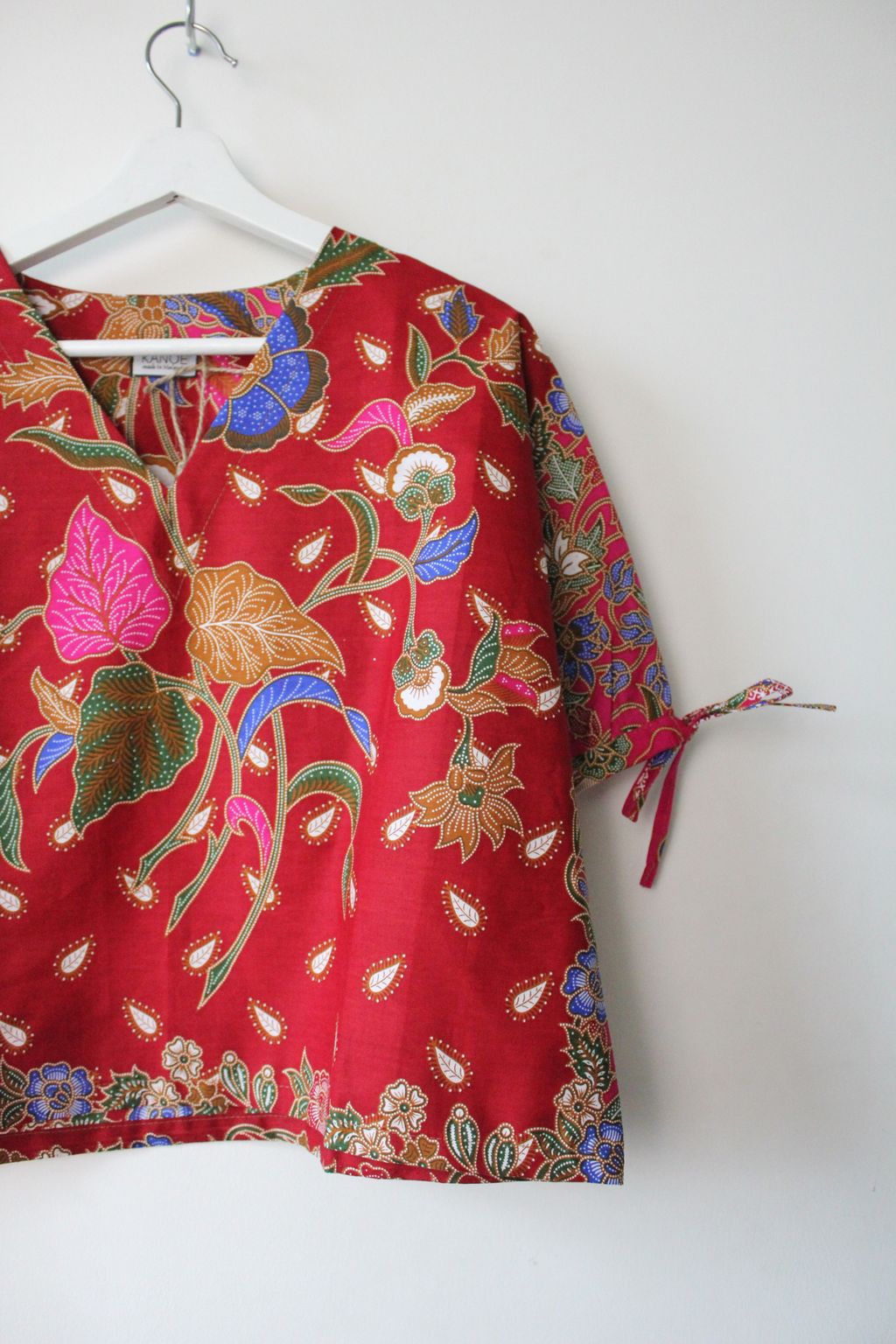 The simple V - neck batik top that suits most figures very well, 100% cotton batik, with sleeves that fall on the shoulders. Wear this with a plain bottom. Both work and play friendly, hey hey hey!