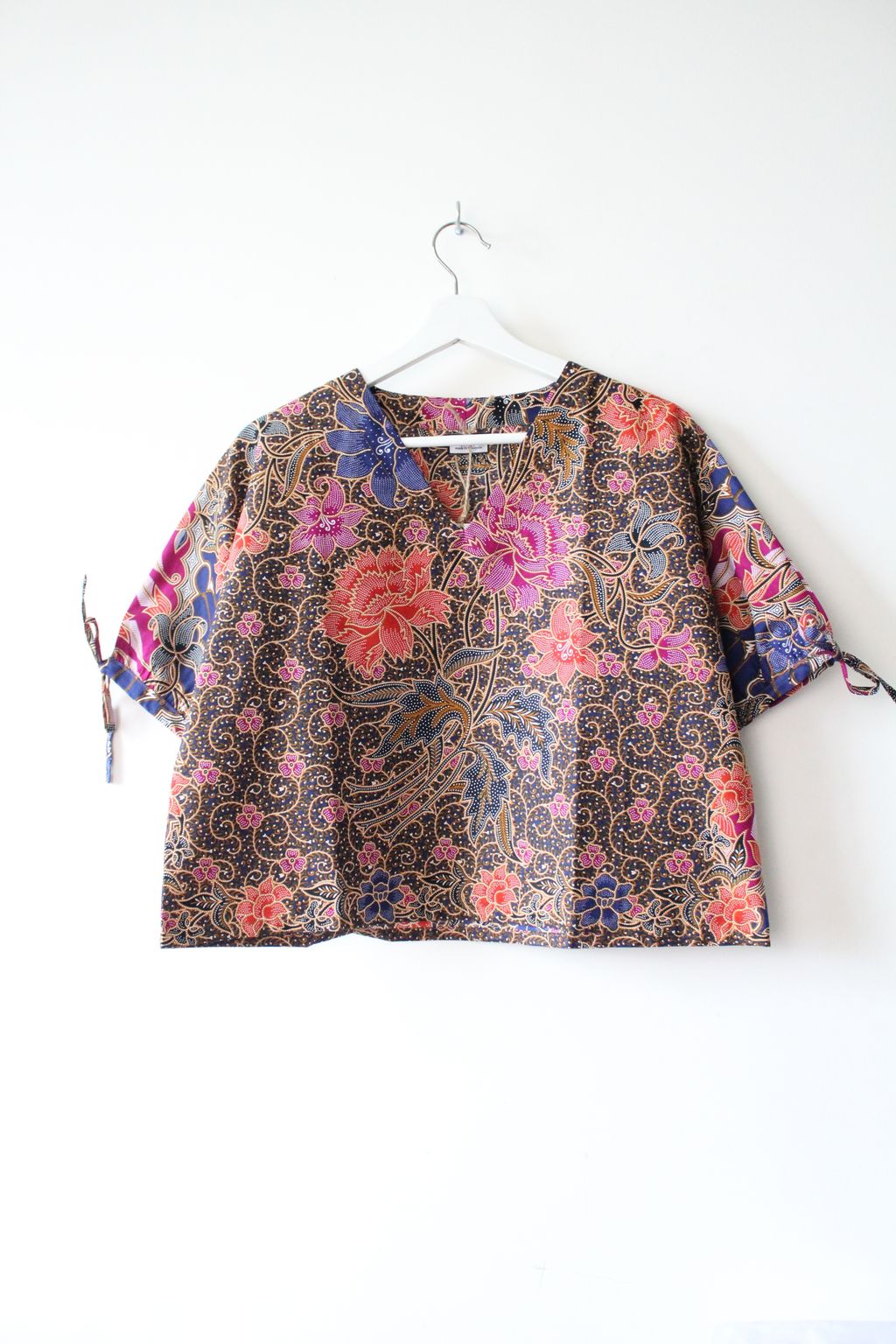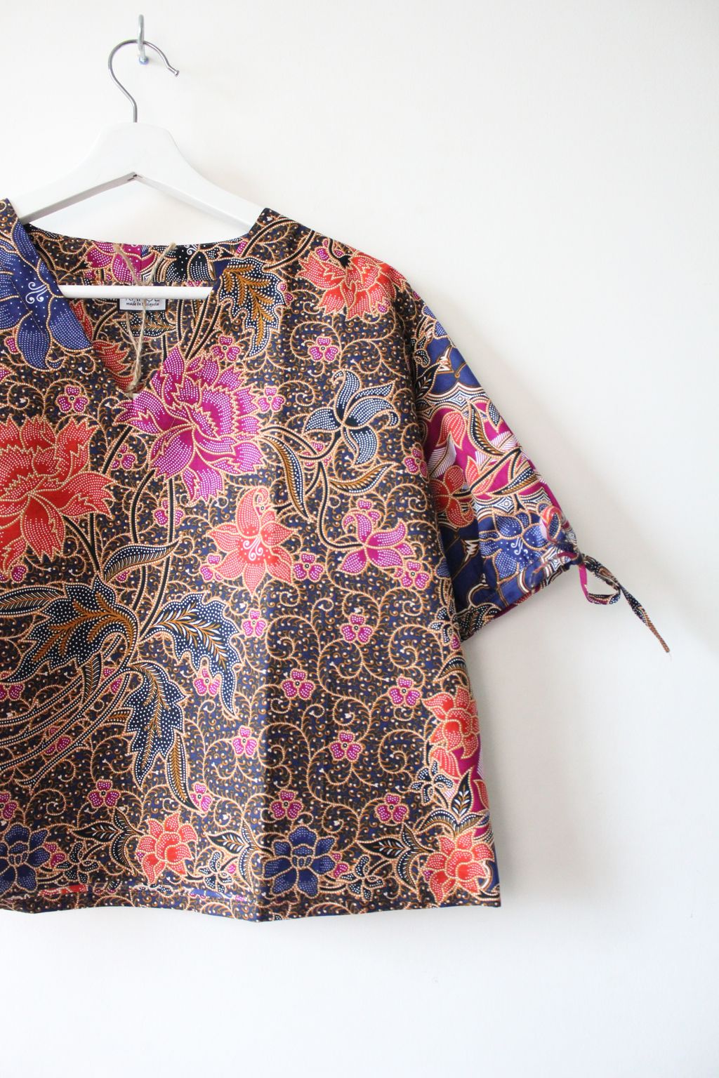 The simple V - neck batik top that suits most figures very well, 100% cotton batik, with sleeves that fall on the shoulders. Wear this with a plain bottom. Both work and play friendly, hey hey hey!