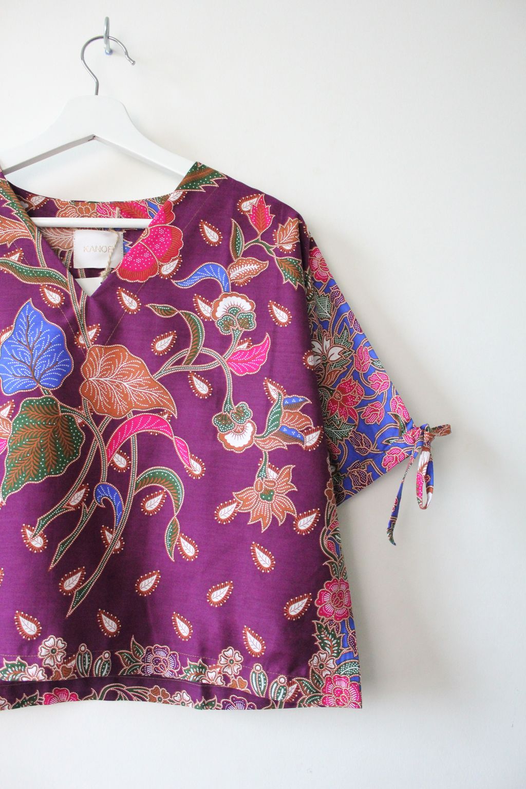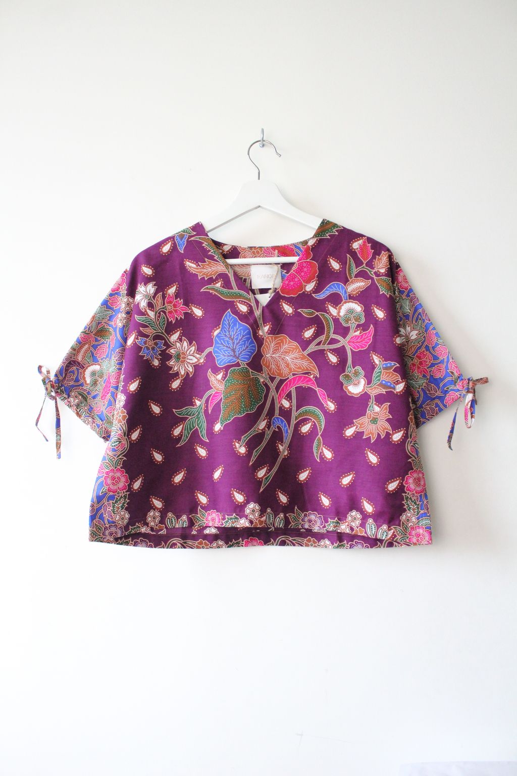 The simple V - neck batik top that suits most figures very well, 100% cotton batik, with sleeves that fall on the shoulders. Wear this with a plain bottom. Both work and play friendly, hey hey hey!
