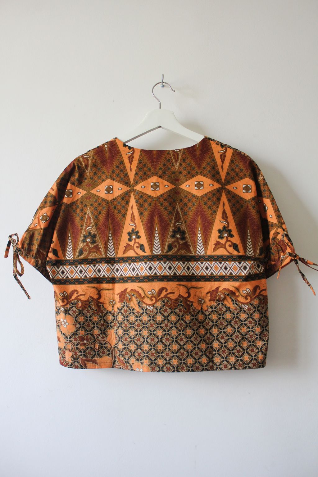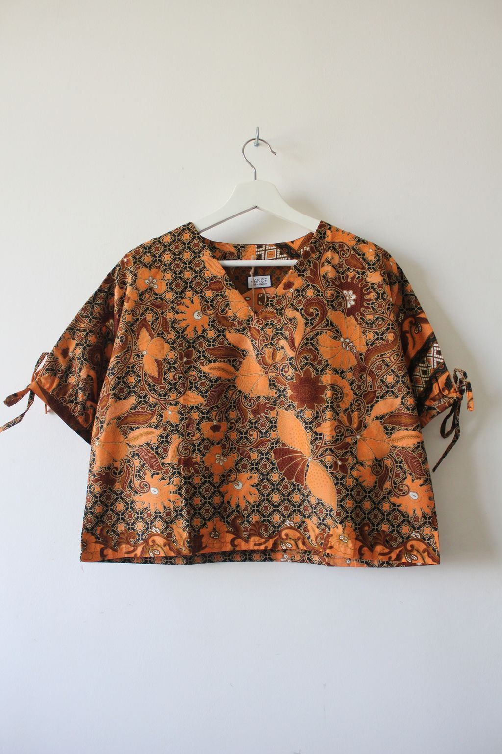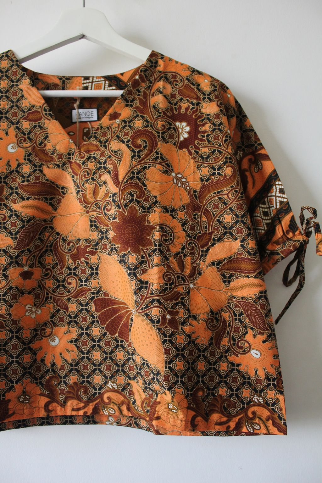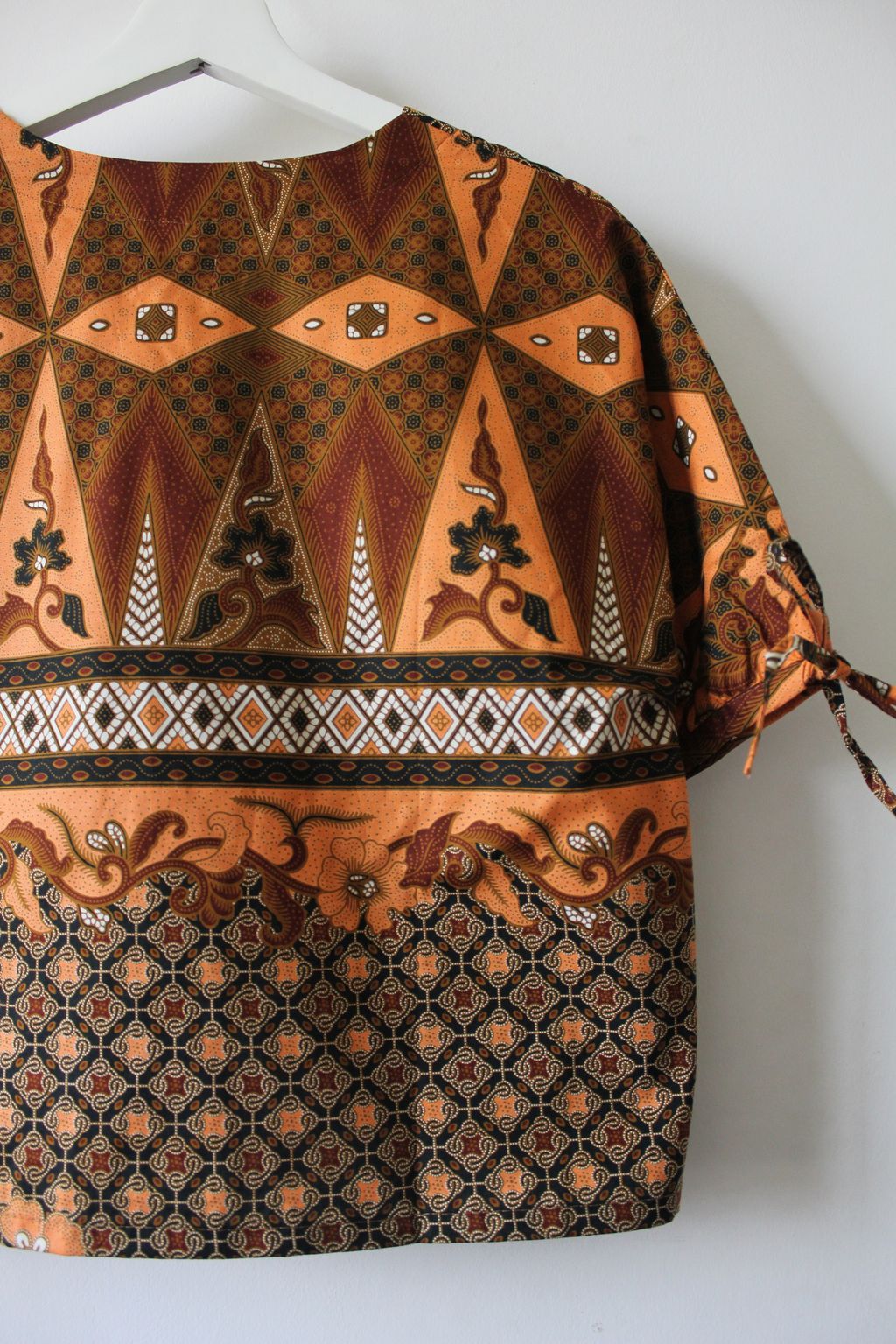 The simple V - neck batik top that suits most figures very well, 100% cotton batik, with sleeves that fall on the shoulders. Wear this with a plain bottom. Both work and play friendly, hey hey hey!