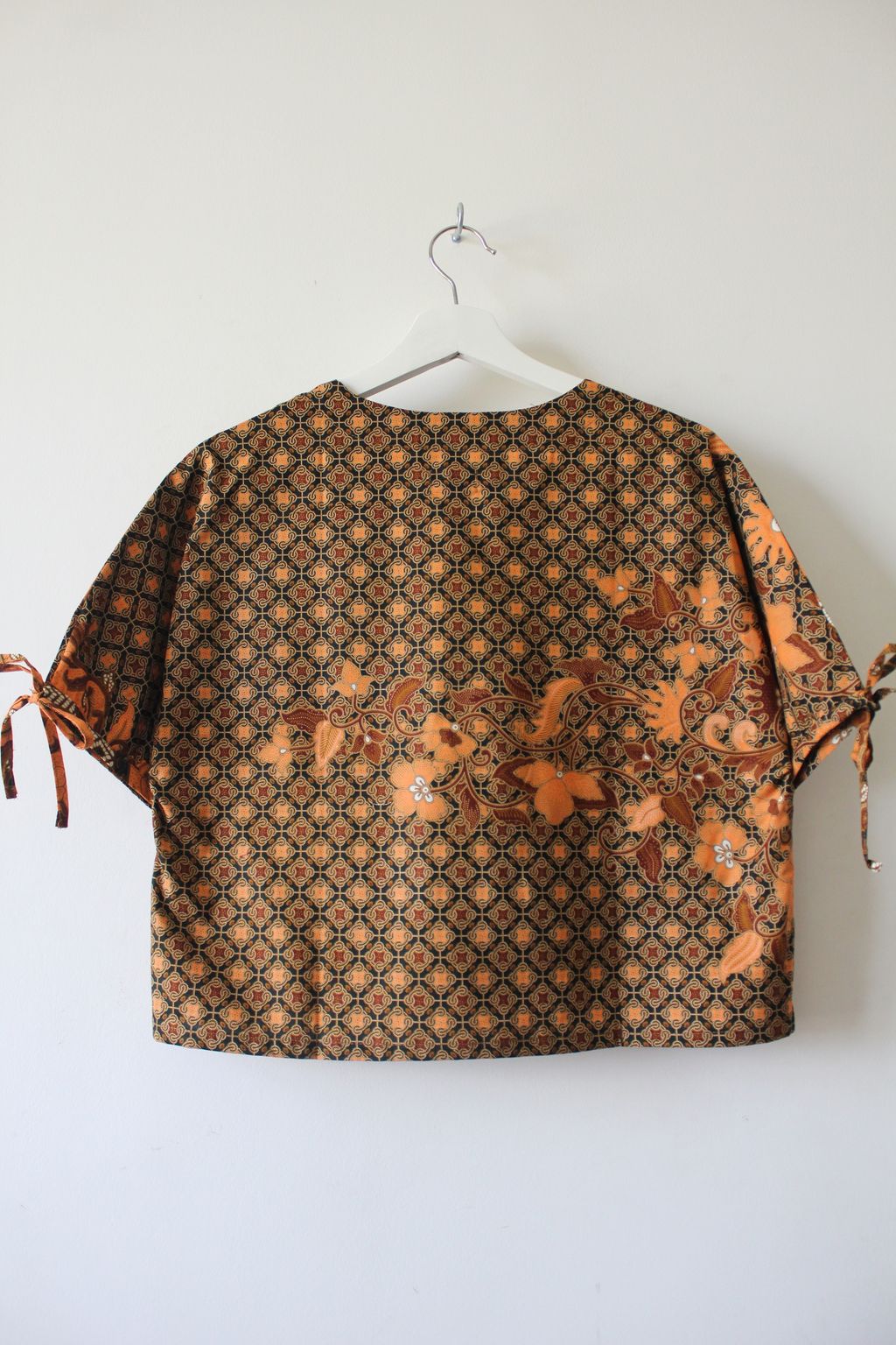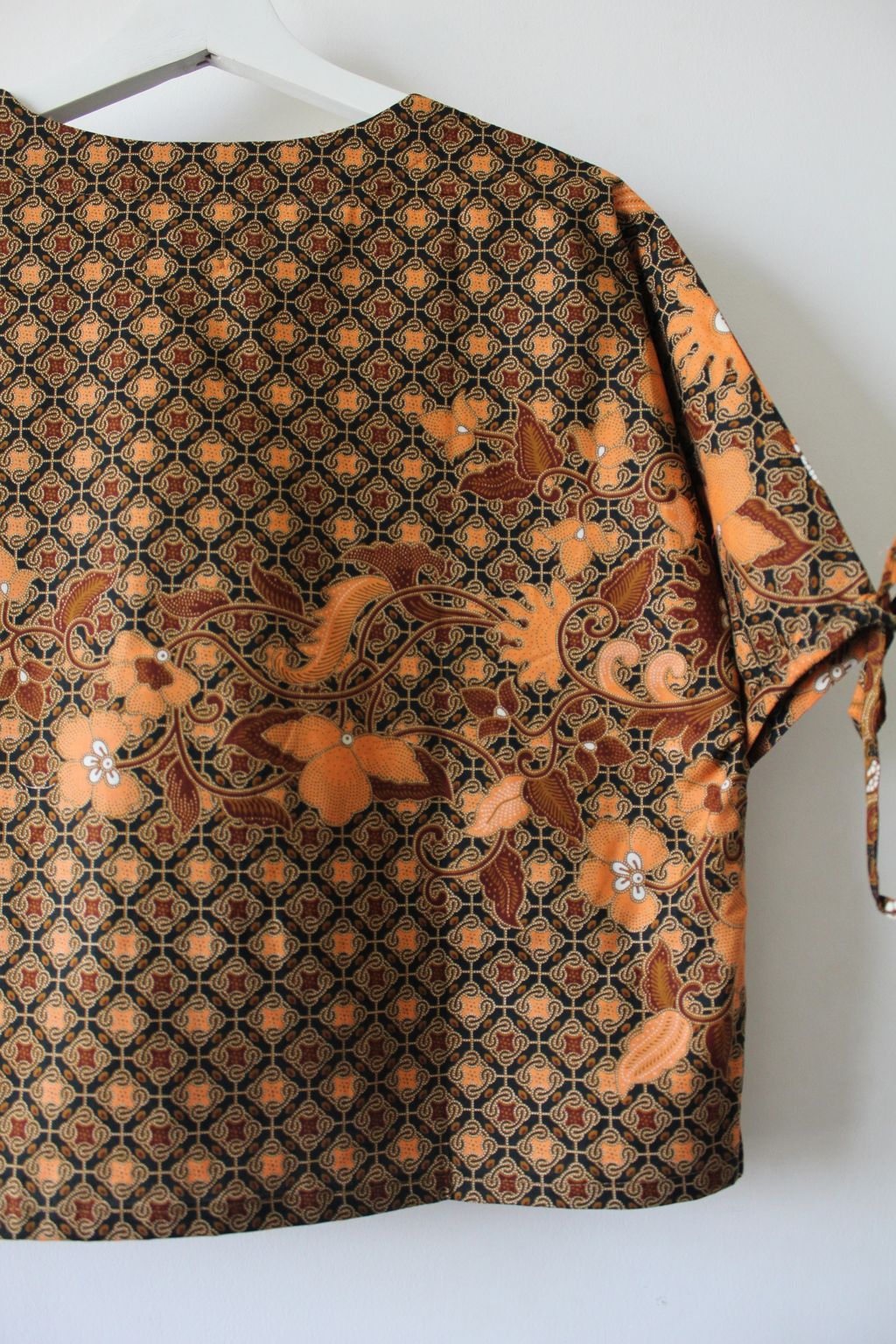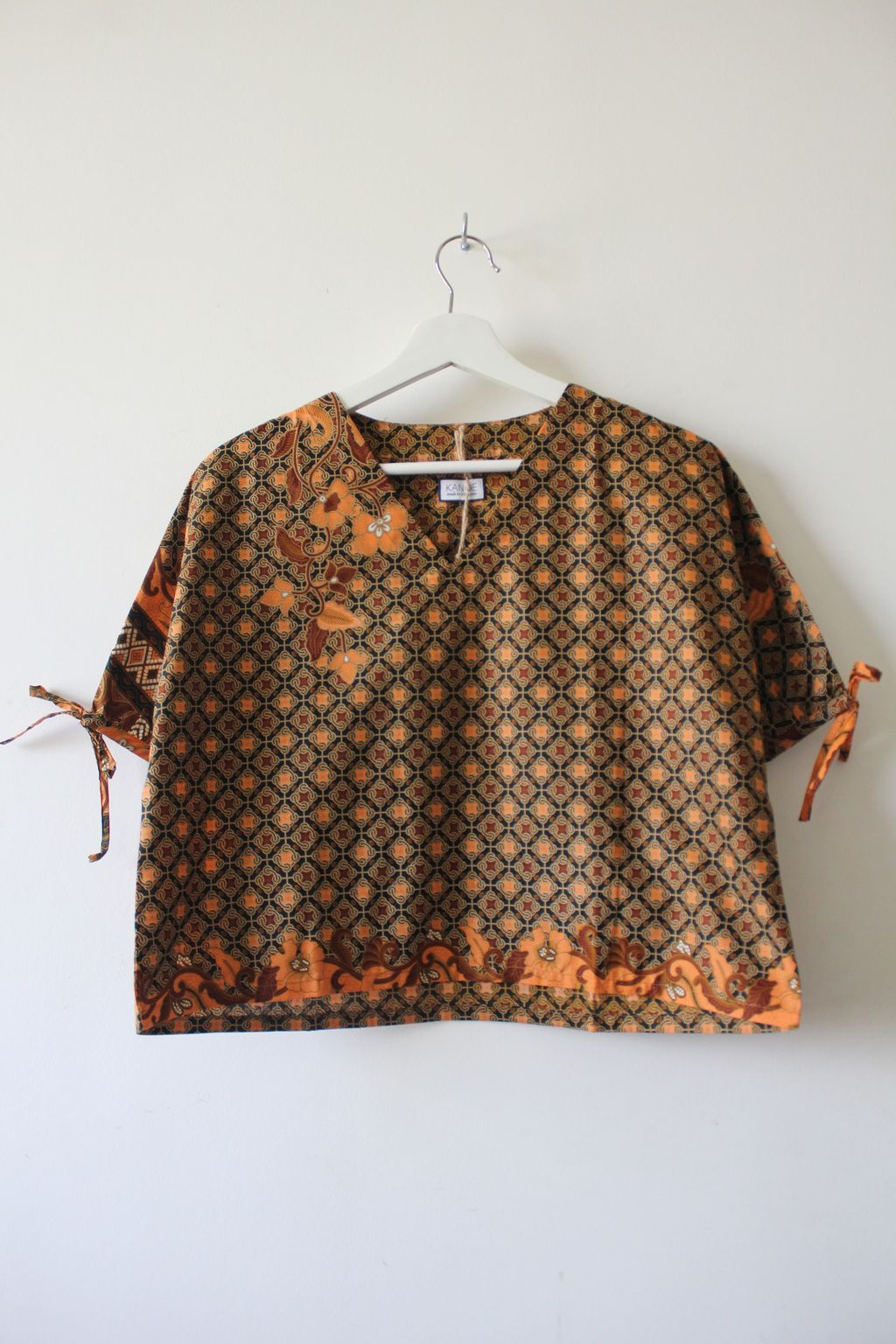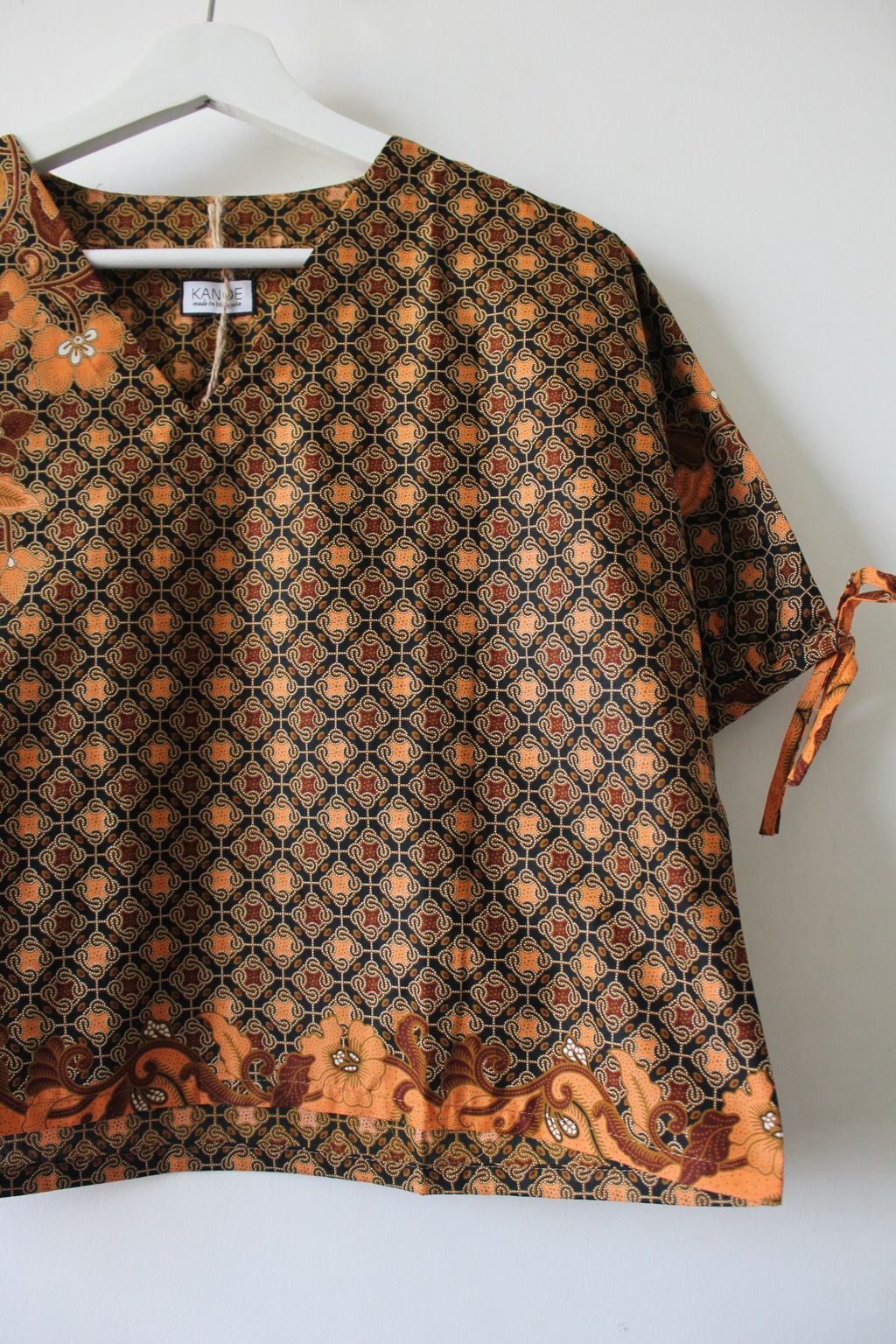 The simple V - neck batik top that suits most figures very well, 100% cotton batik, with sleeves that fall on the shoulders. Wear this with a plain bottom. Both work and play friendly, hey hey hey!