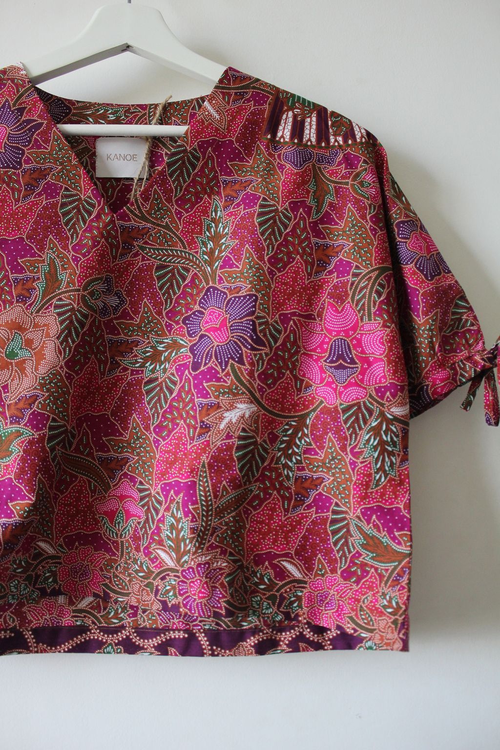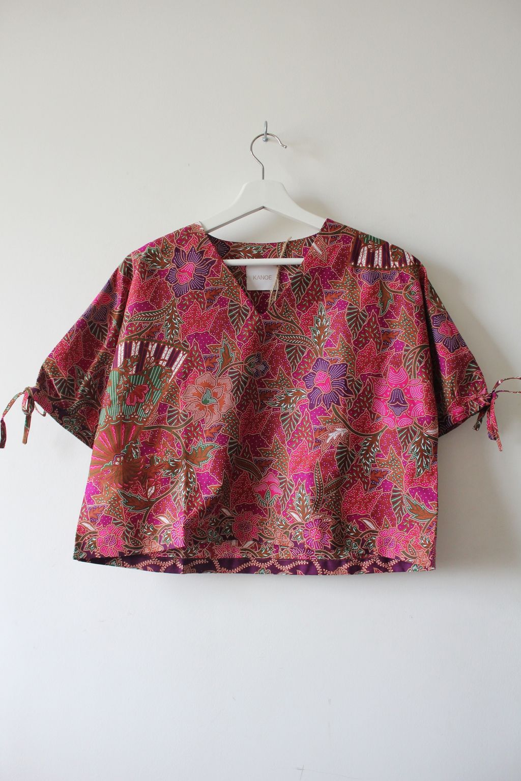 The simple V - neck batik top that suits most figures very well, 100% cotton batik, with sleeves that fall on the shoulders. Wear this with a plain bottom. Both work and play friendly, hey hey hey!