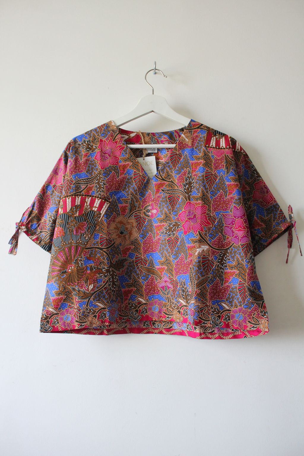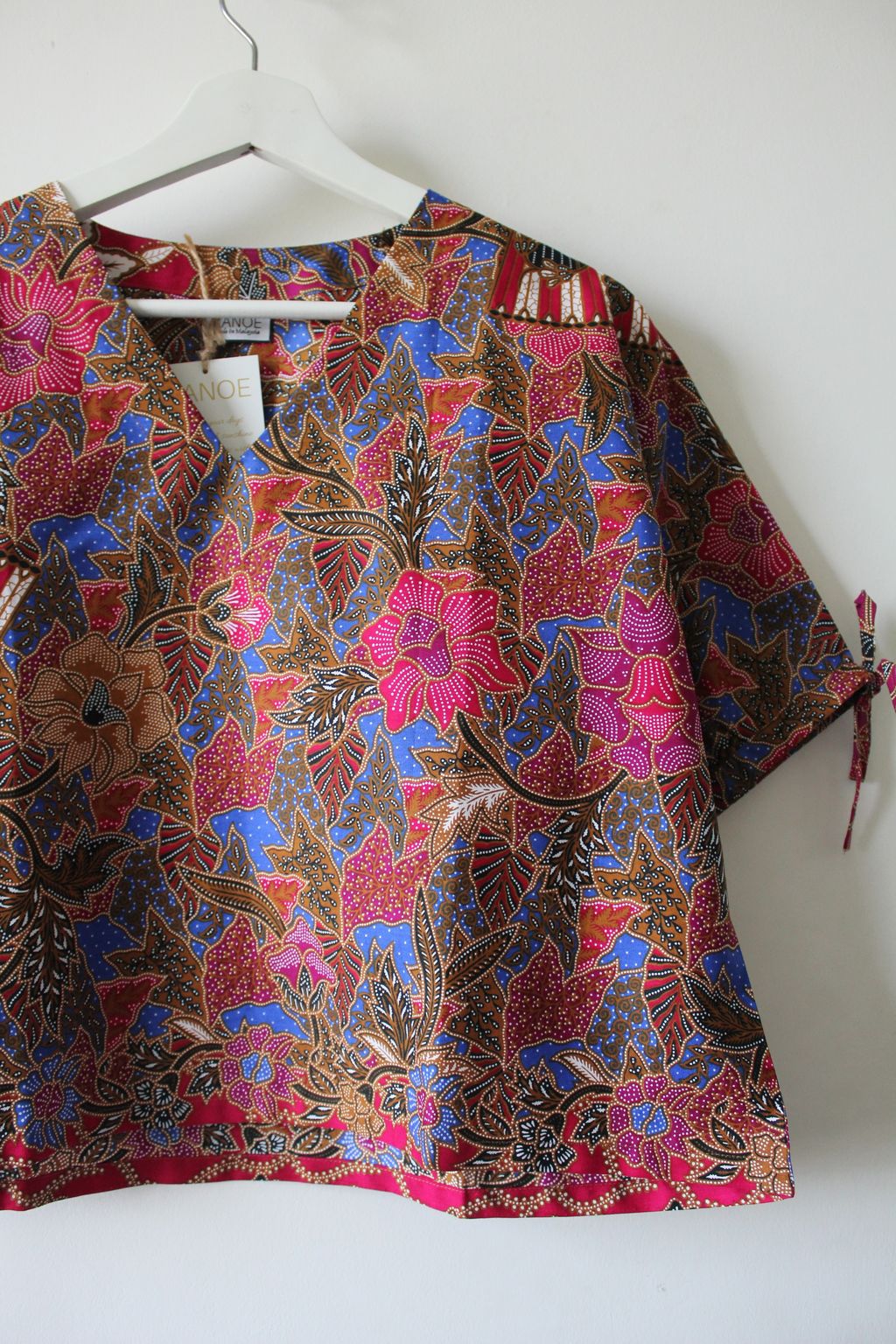 The simple V - neck batik top that suits most figures very well, 100% cotton batik, with sleeves that fall on the shoulders. Wear this with a plain bottom. Both work and play friendly, hey hey hey!