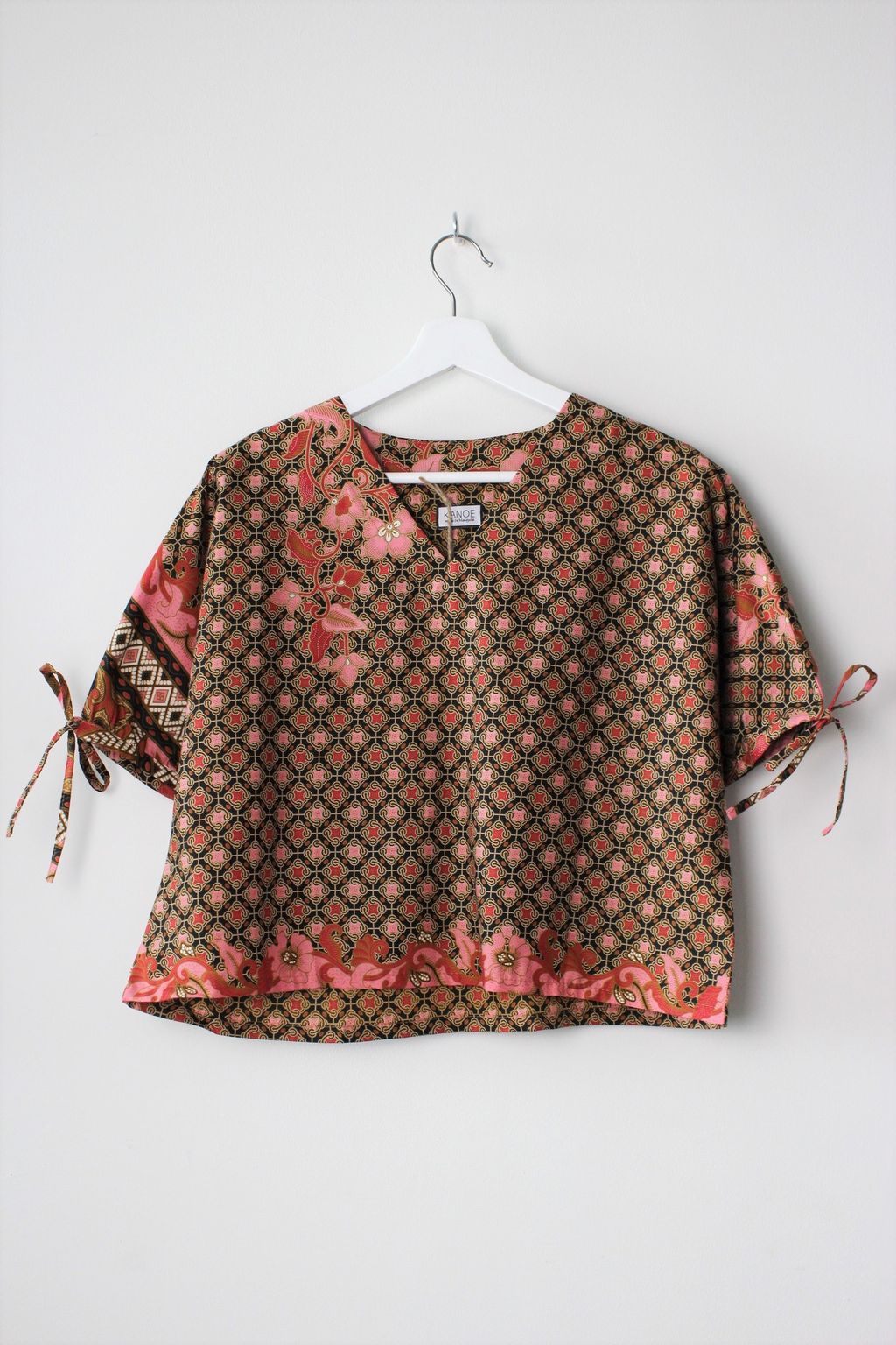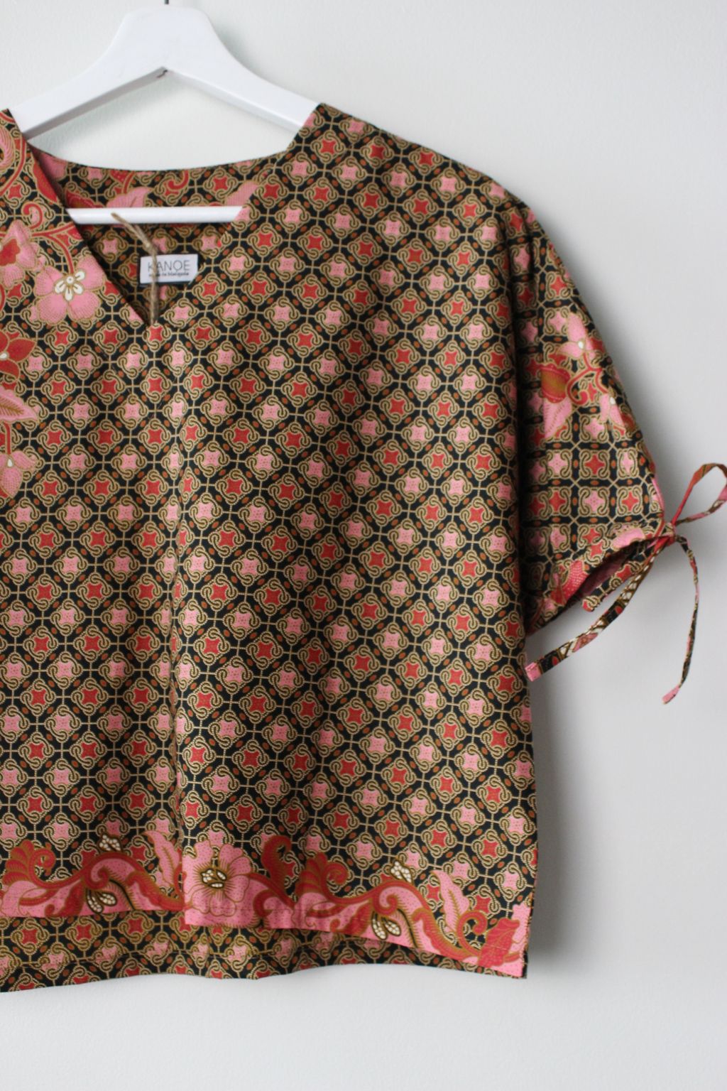 The simple V - neck batik top that suits most figures very well, 100% cotton batik, with sleeves that fall on the shoulders. Wear this with a plain bottom. Both work and play friendly, hey hey hey!
