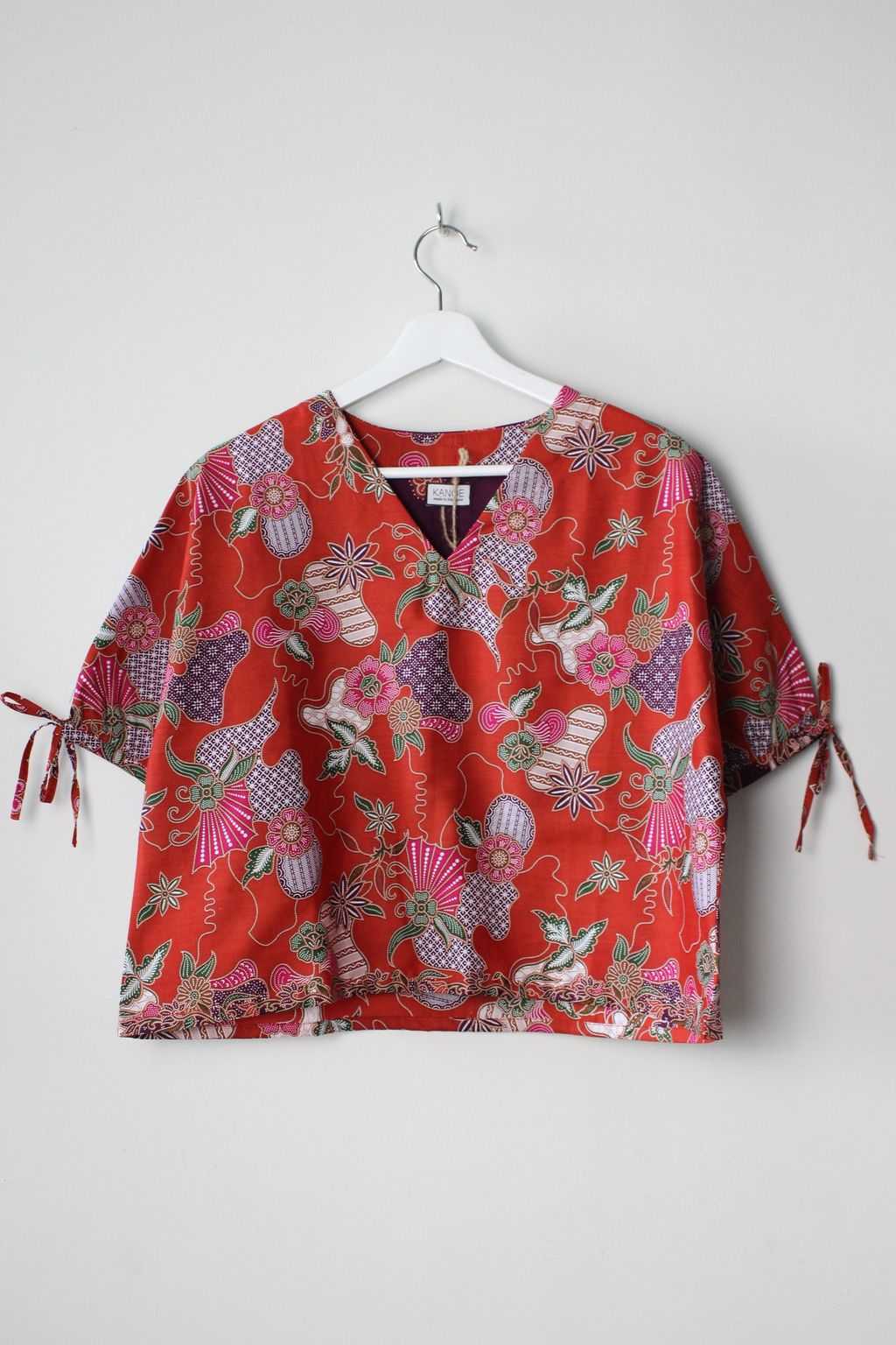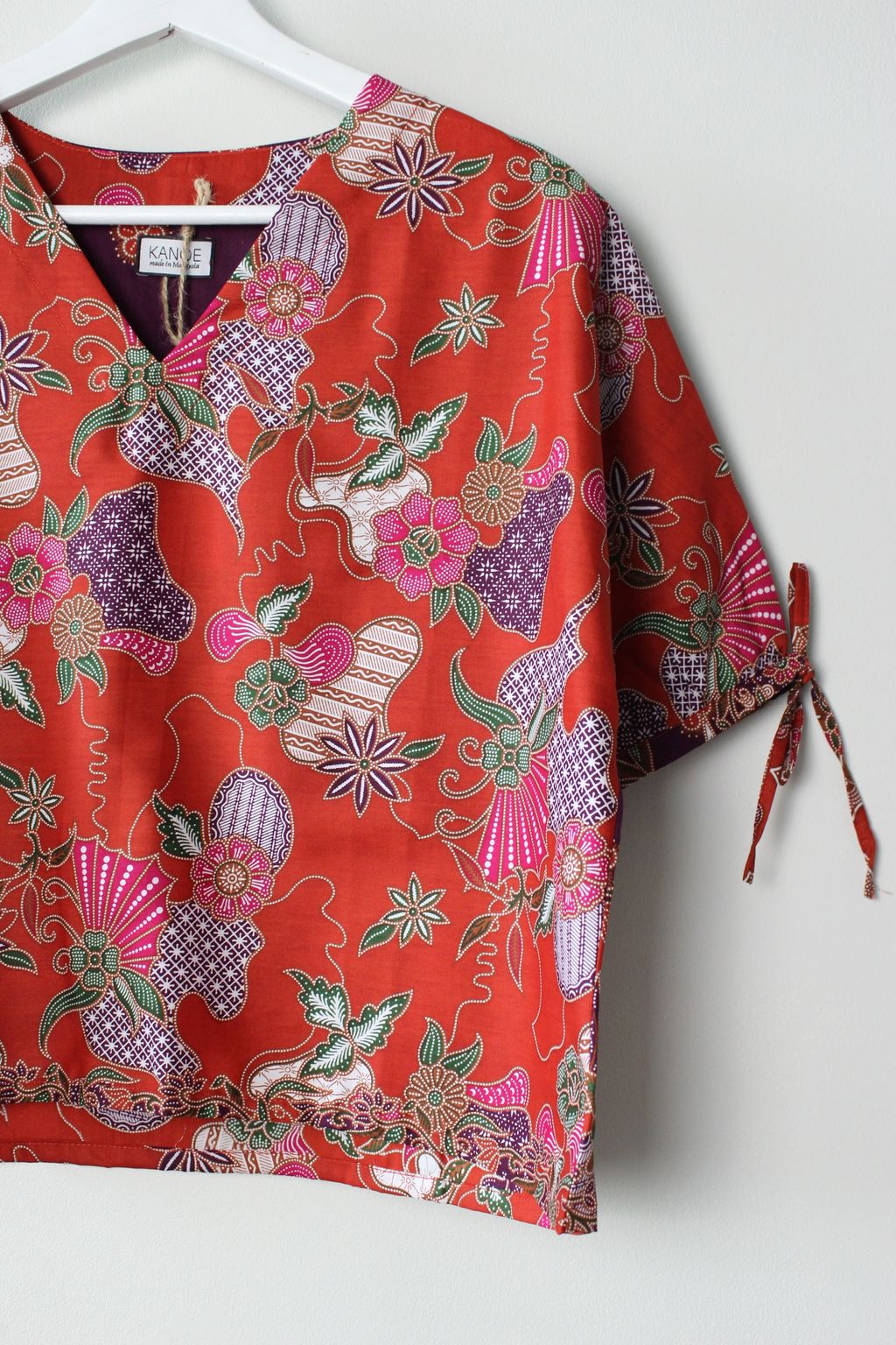 The simple V - neck batik top that suits most figures very well, 100% cotton batik, with sleeves that fall on the shoulders. Wear this with a plain bottom. Both work and play friendly, hey hey hey!