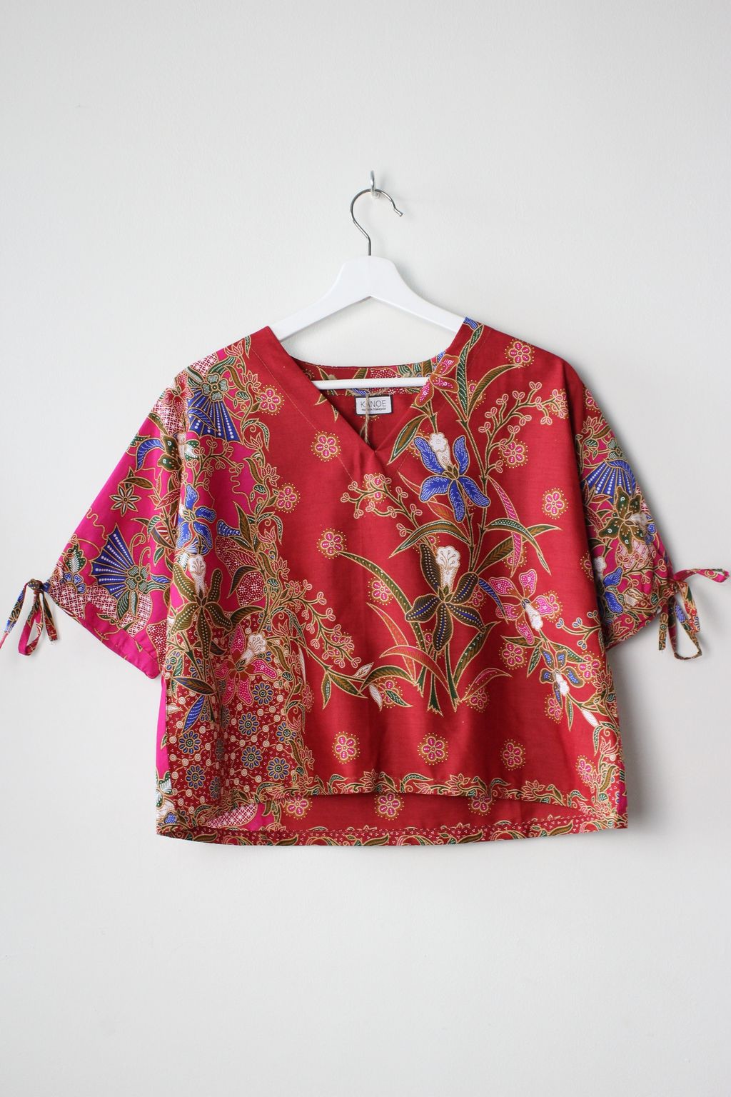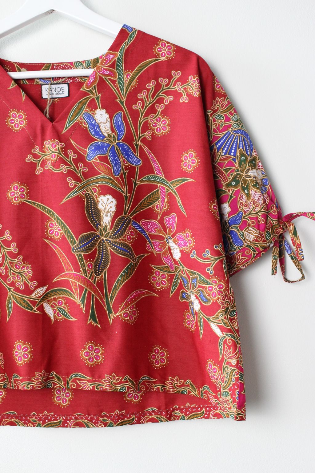 The simple V - neck batik top that suits most figures very well, 100% cotton batik, with sleeves that fall on the shoulders. Wear this with a plain bottom. Both work and play friendly, hey hey hey!