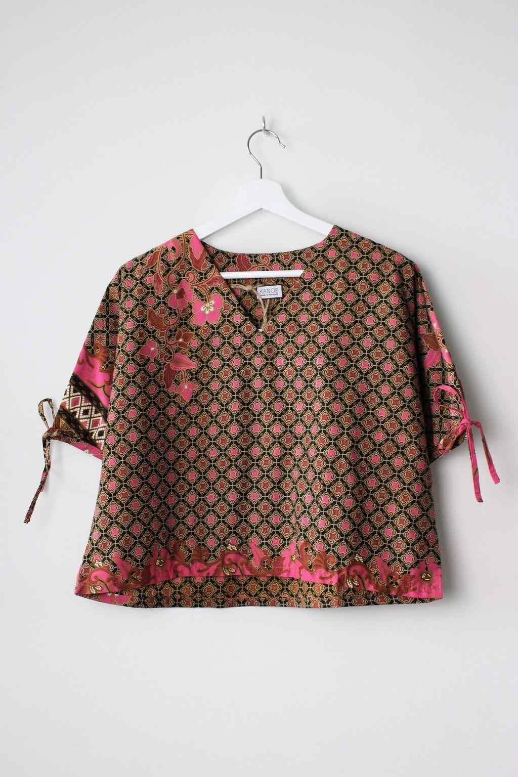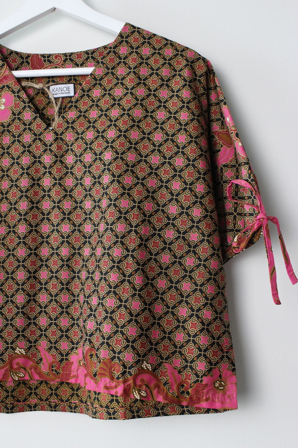 The simple V - neck batik top that suits most figures very well, 100% cotton batik, with sleeves that fall on the shoulders. Wear this with a plain bottom. Both work and play friendly, hey hey hey!