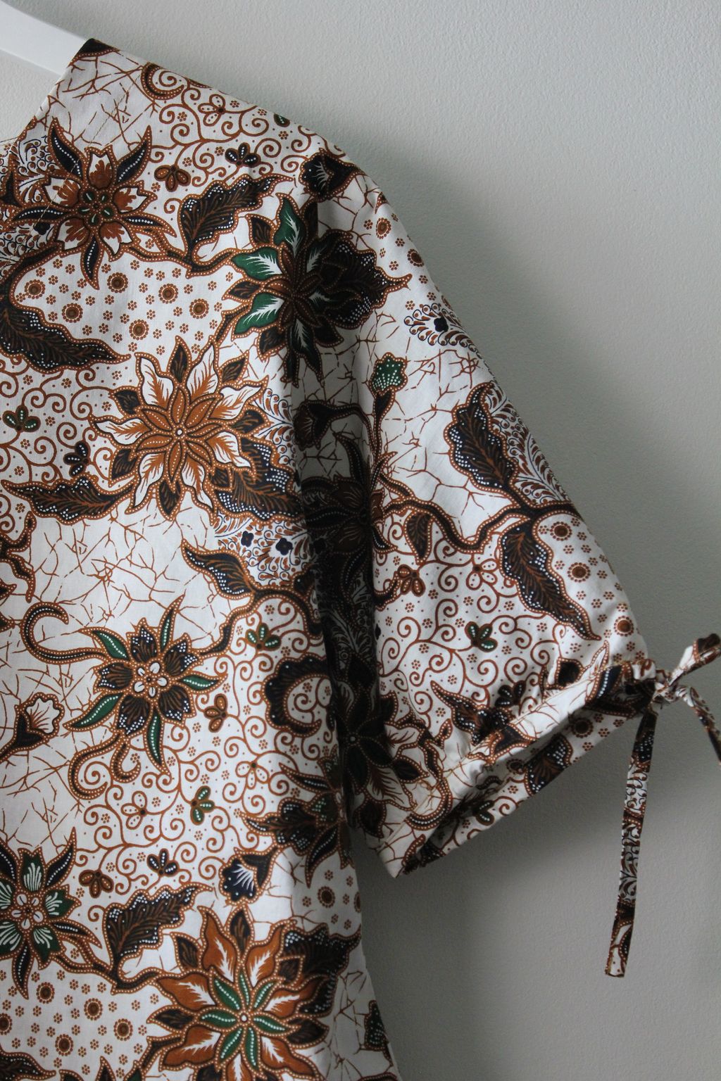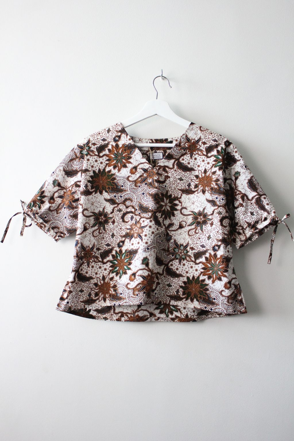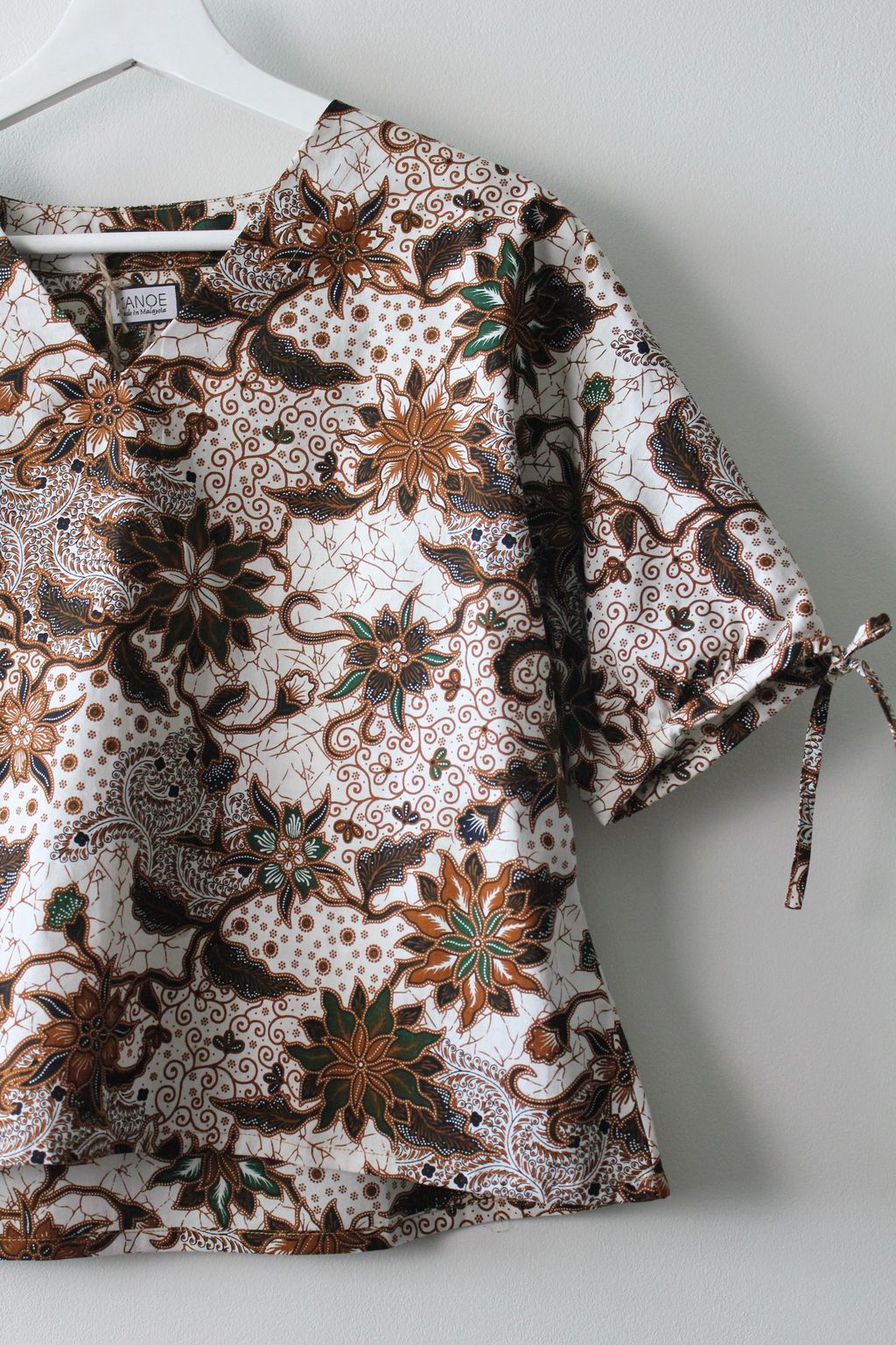 The simple V - neck batik top that suits most figures very well, 100% cotton batik, with sleeves that fall on the shoulders. Wear this with a plain bottom. Both work and play friendly, hey hey hey!
