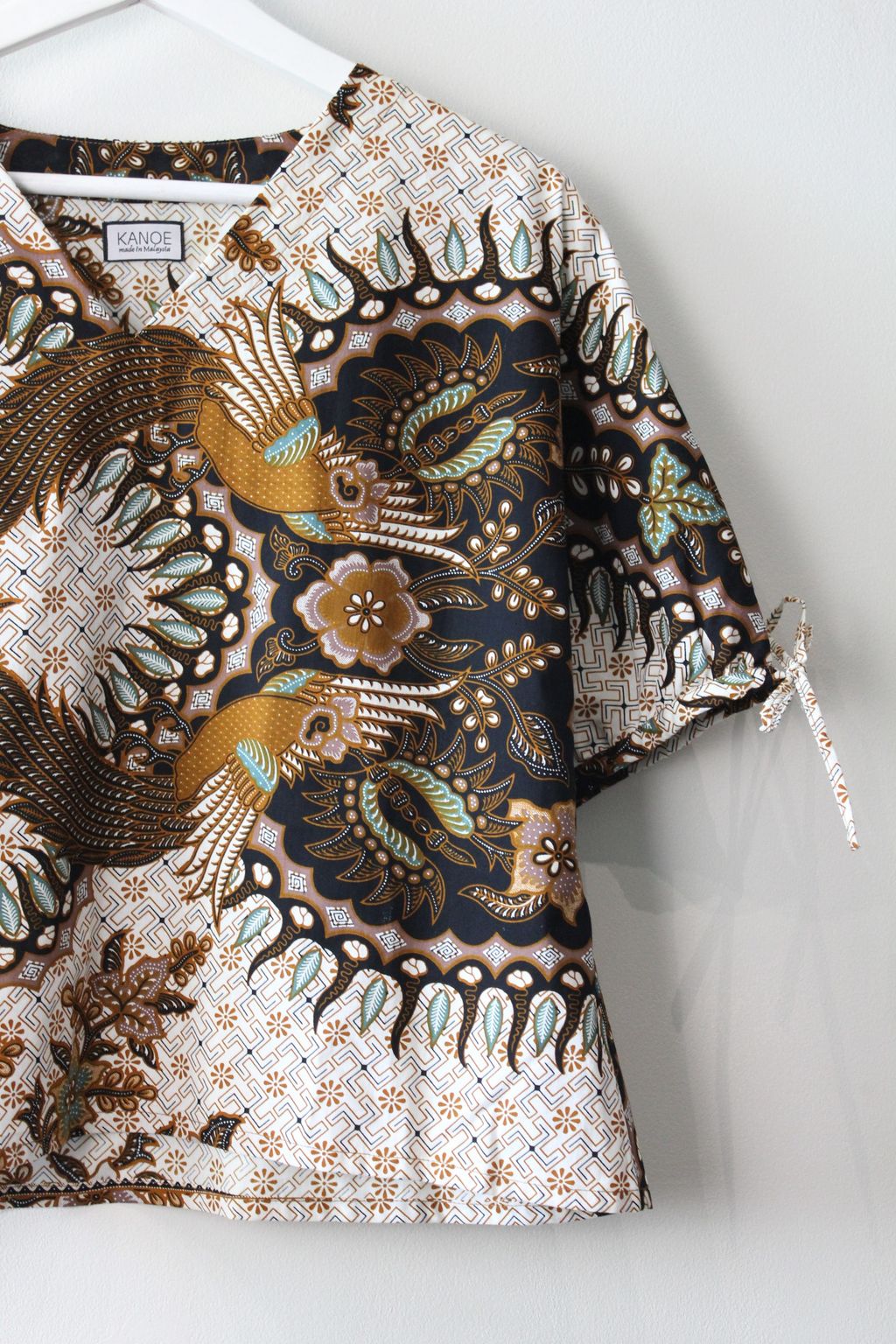 The simple V - neck batik top that suits most figures very well, 100% cotton batik, with sleeves that fall on the shoulders. Wear this with a plain bottom. Both work and play friendly, hey hey hey!