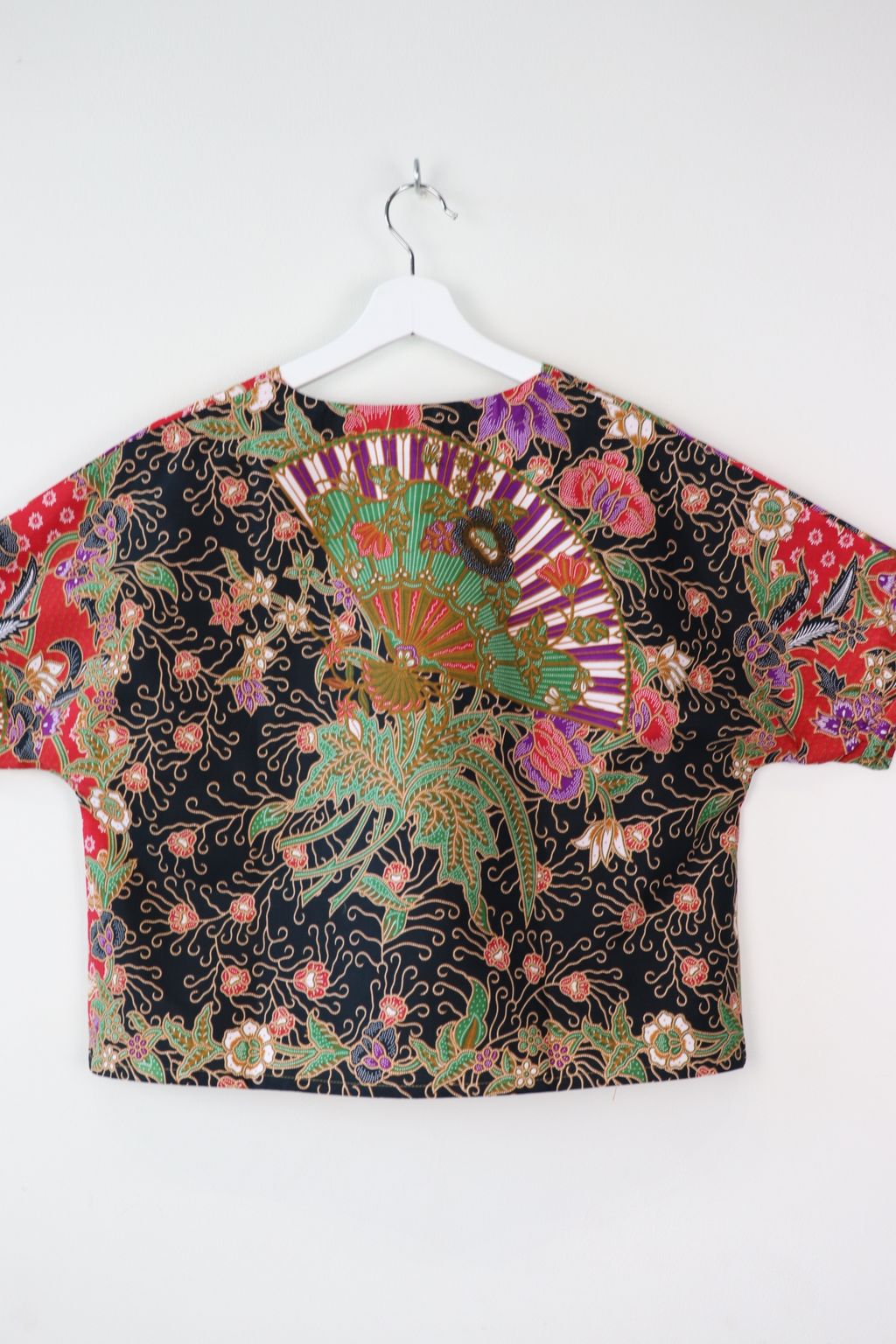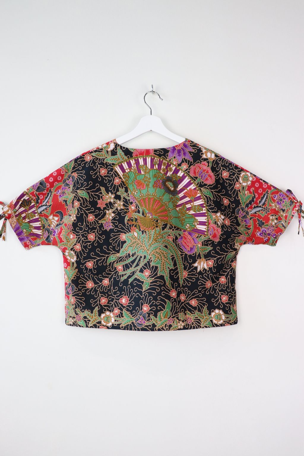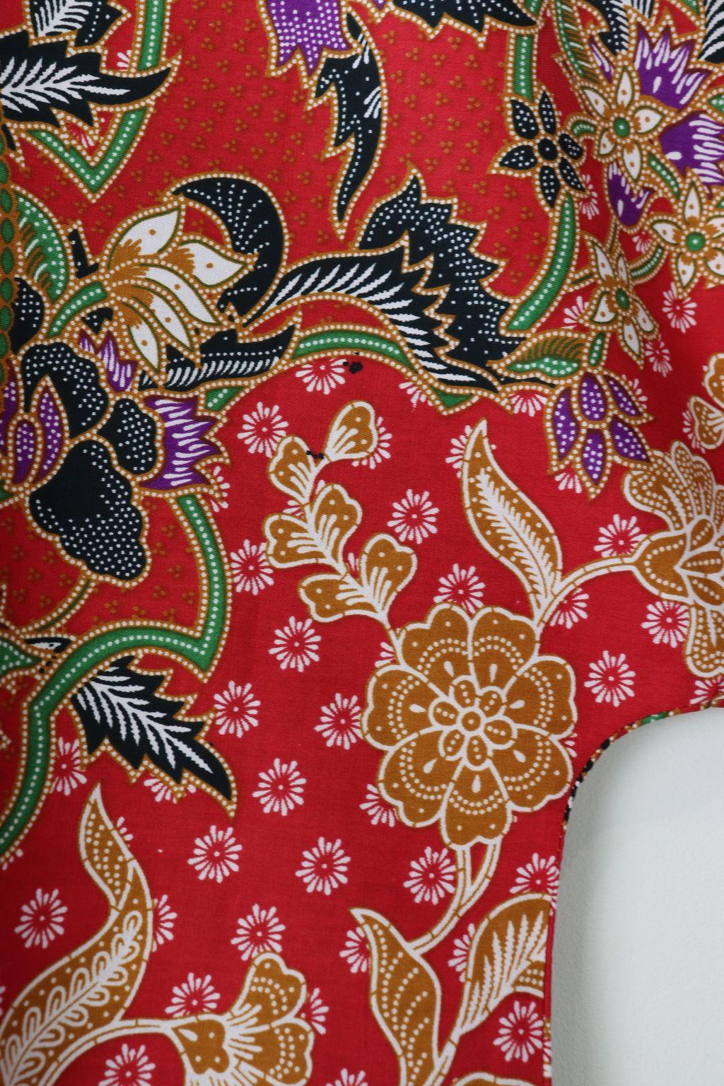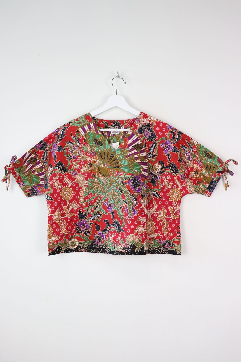 The simple V - neck batik top that suits most figures very well. With sleeves that fall on the shoulders. Wear this with a plain bottom. Both work and play friendly !