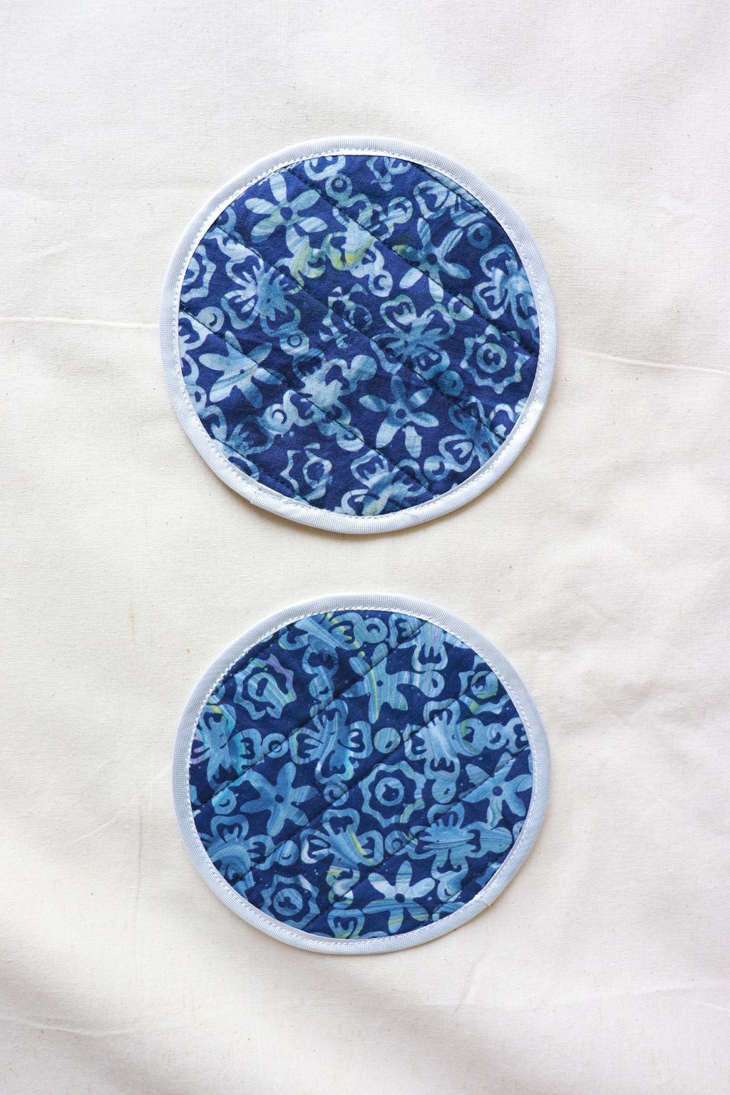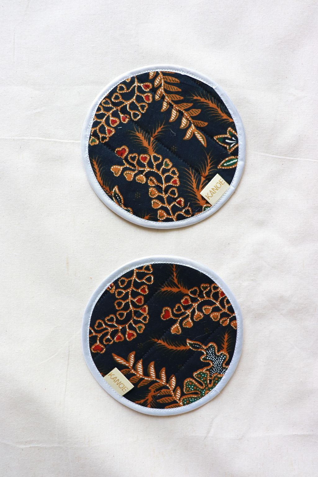 Our tailors had fun mixing and matching the batik prints of these reversible digital and handmade batik textile coasters.