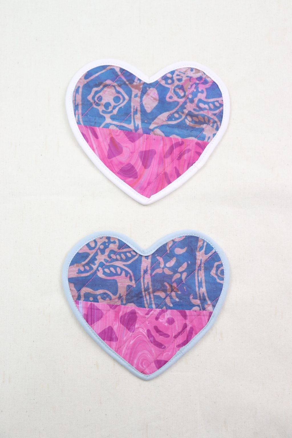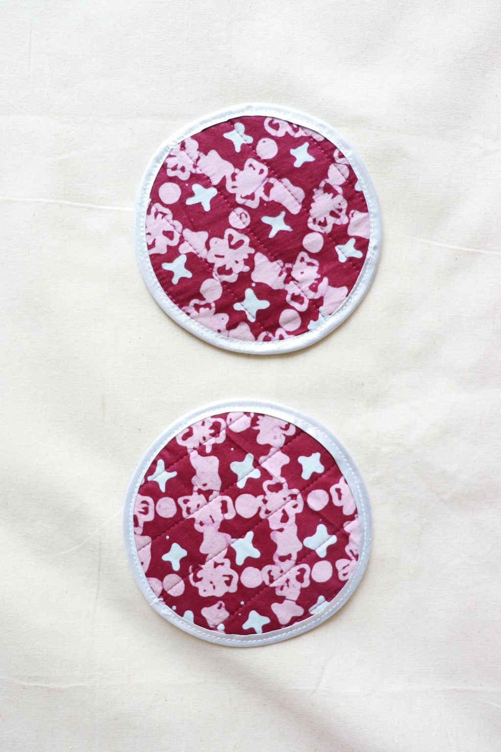 Our tailors had fun mixing and matching the batik prints of these reversible digital and handmade batik textile coasters.