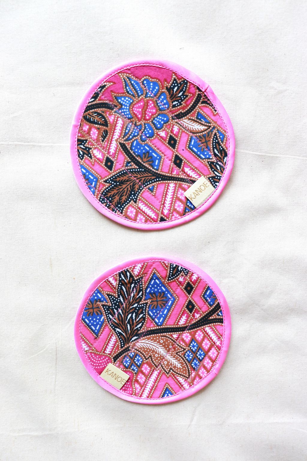 Our tailors had fun mixing and matching the batik prints of these reversible digital and handmade batik textile coasters.