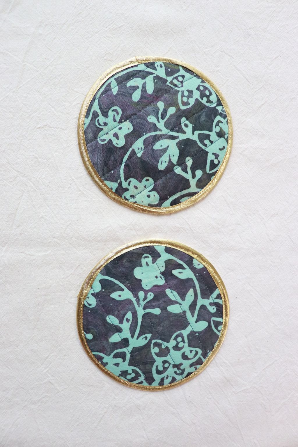 Our tailors had fun mixing and matching the batik prints of these reversible digital and handmade batik textile coasters.