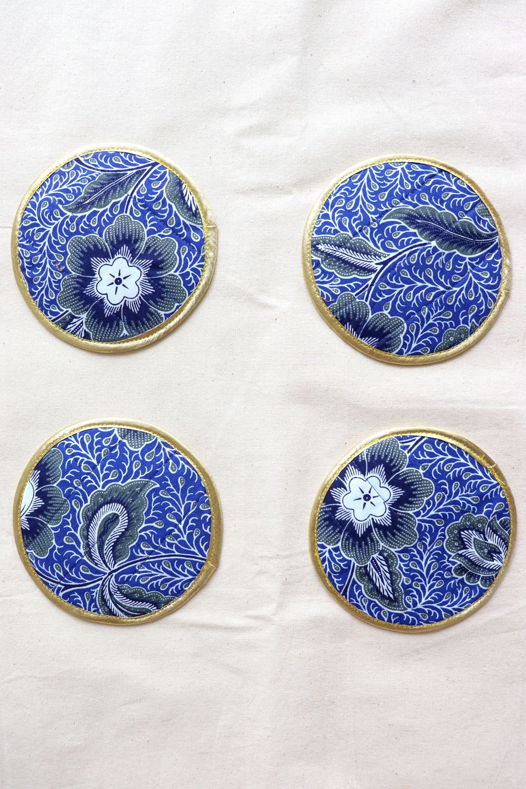 Our tailors had fun mixing and matching the batik prints of these reversible digital and handmade batik textile coasters.