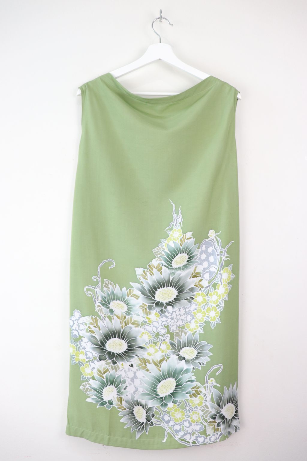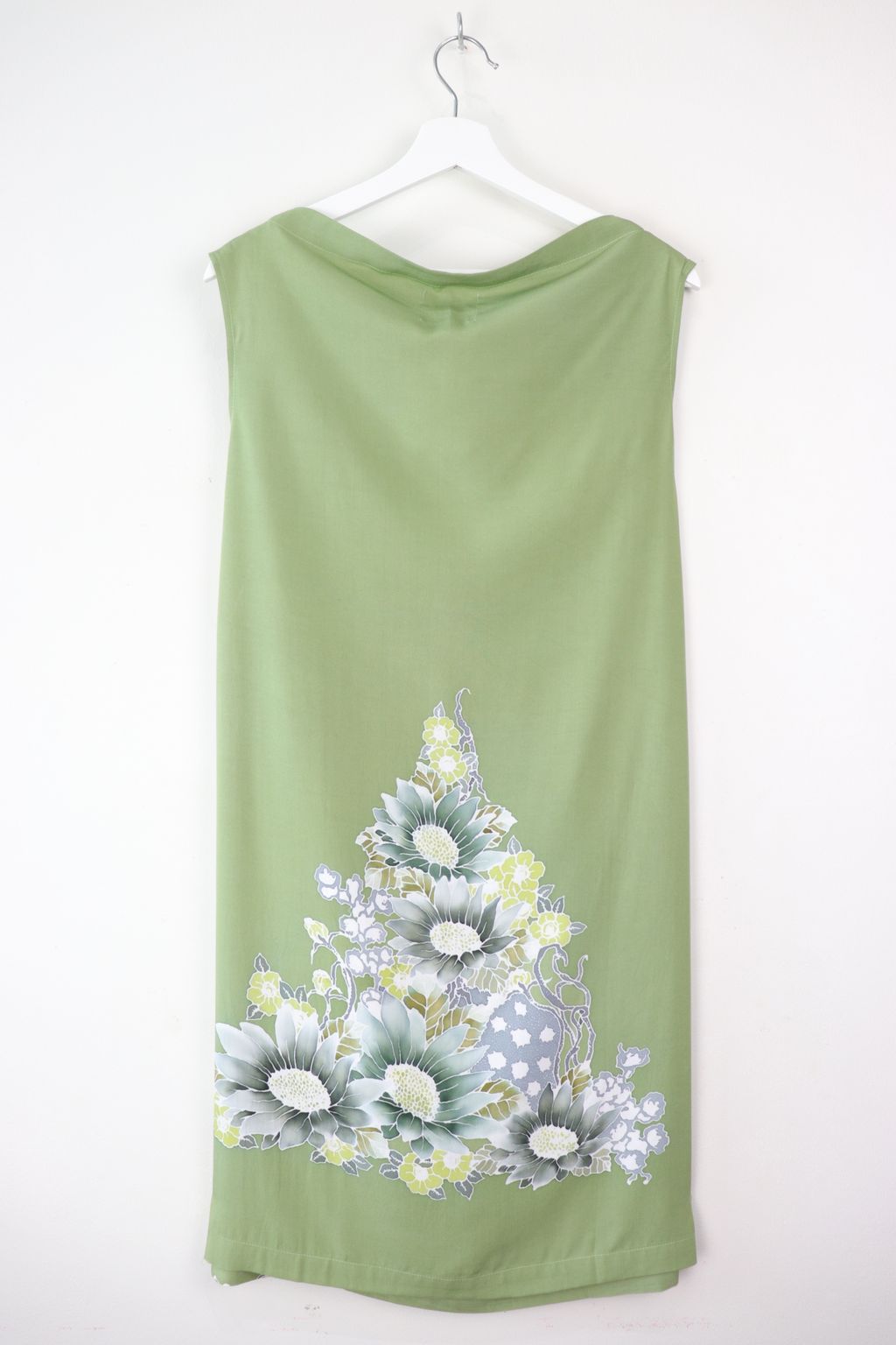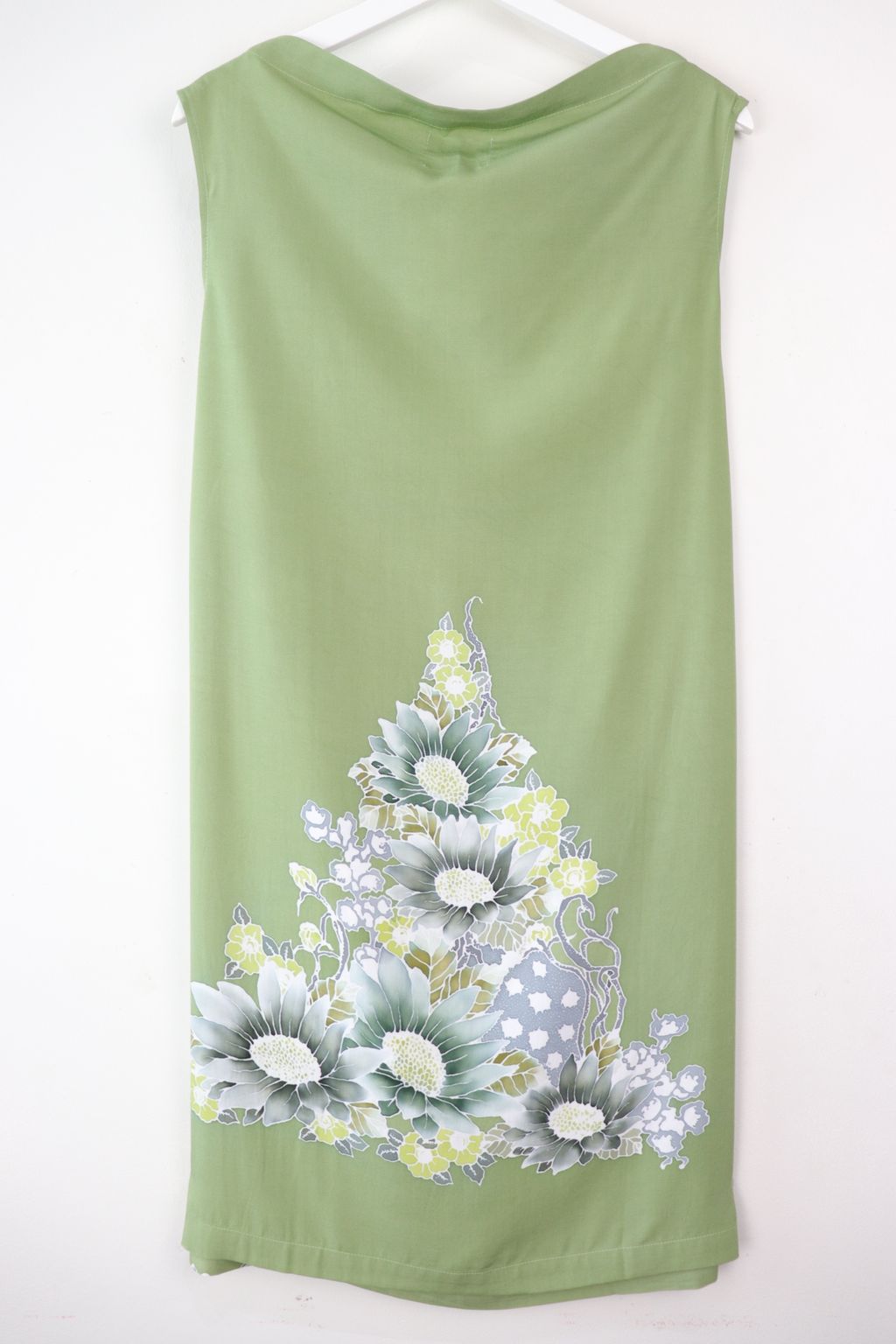 Batik Cowl Dress - Chrysanthemum Sage *Flawed [HandDrawn Batik]