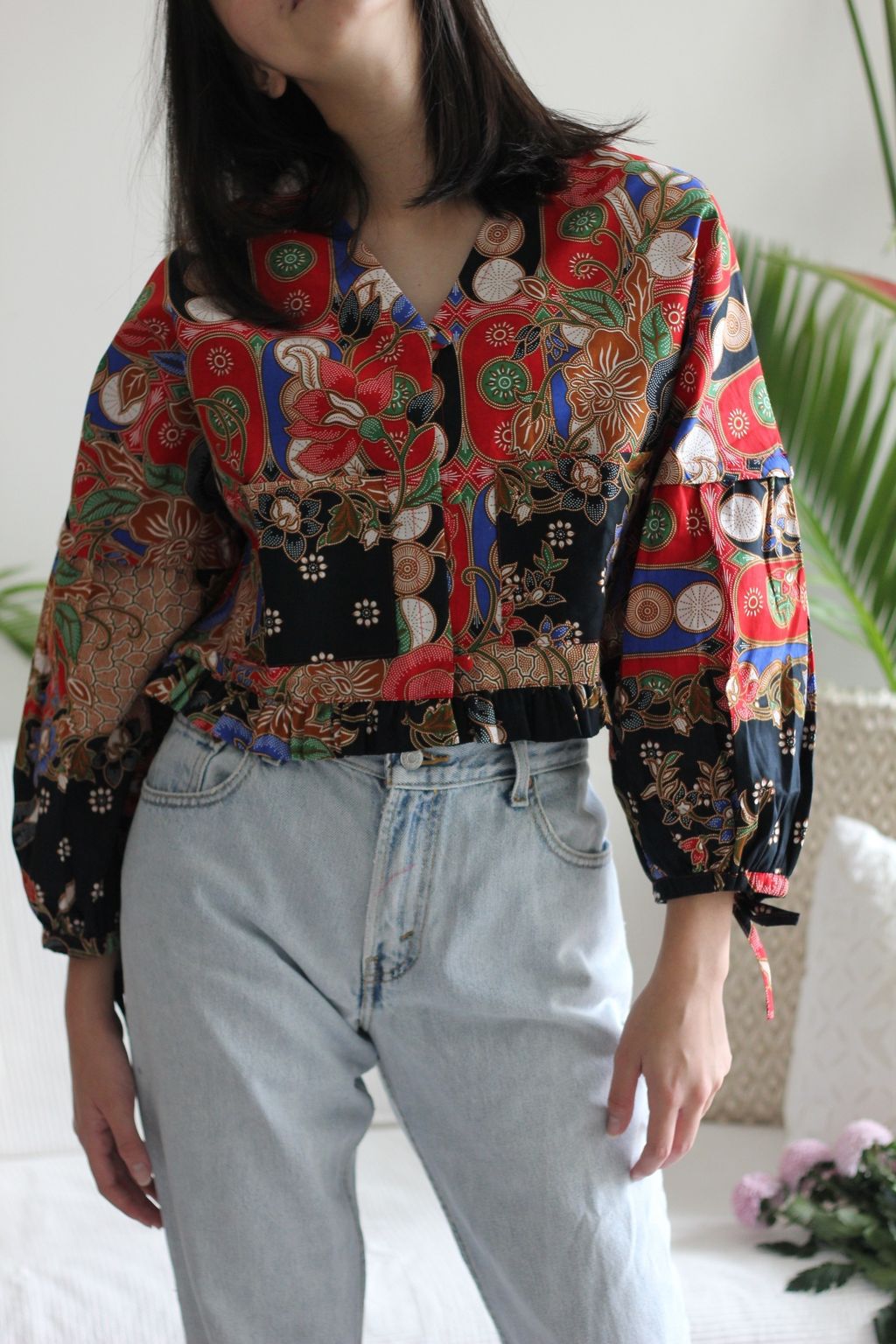 Wear this as a cropped jacket or even as a top! Extremely versatile. For casual or even professional. Button it up or leave the button open. Sleeves can be also worn up or down! This cropped jacket is a statement piece. Can be worn to work or even on a day out! As you like. And Pockets to put all your ang pao’s this Chinese New year !