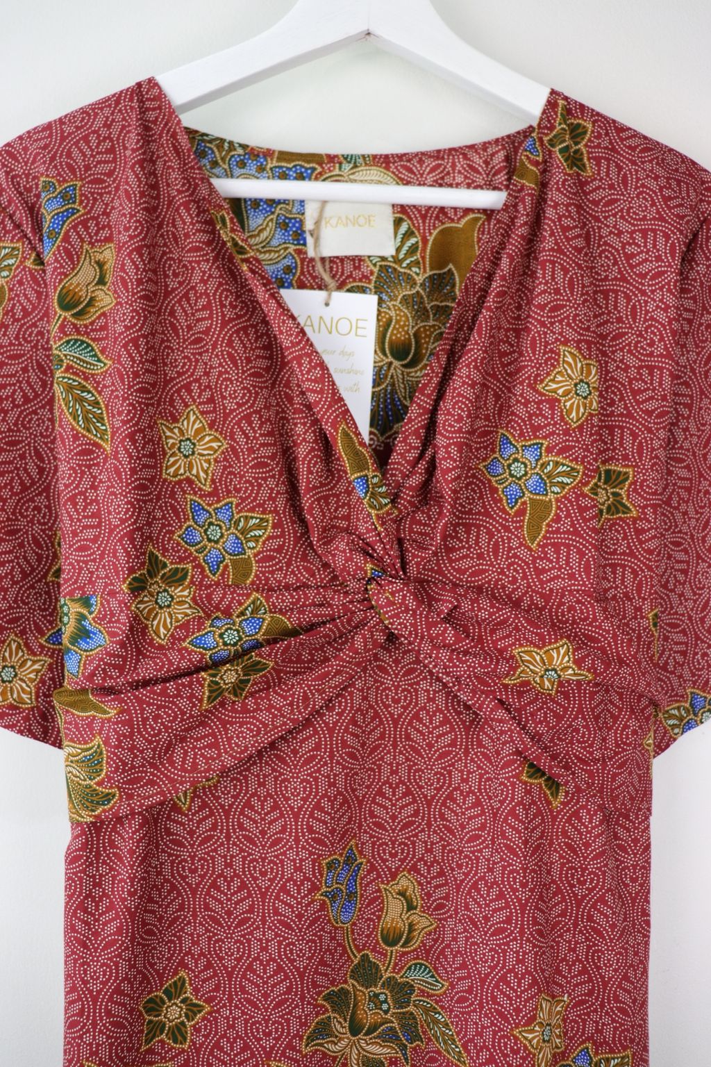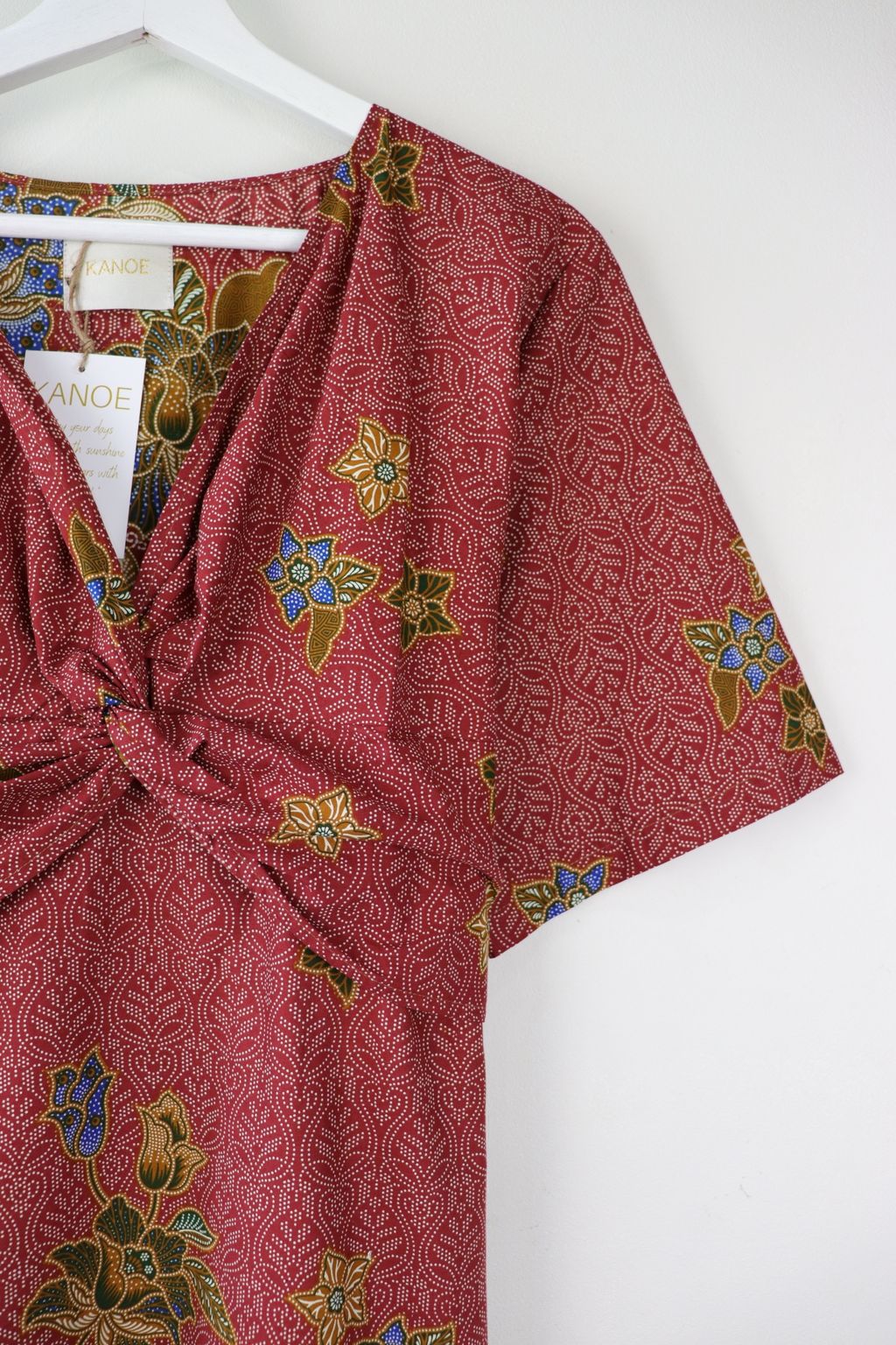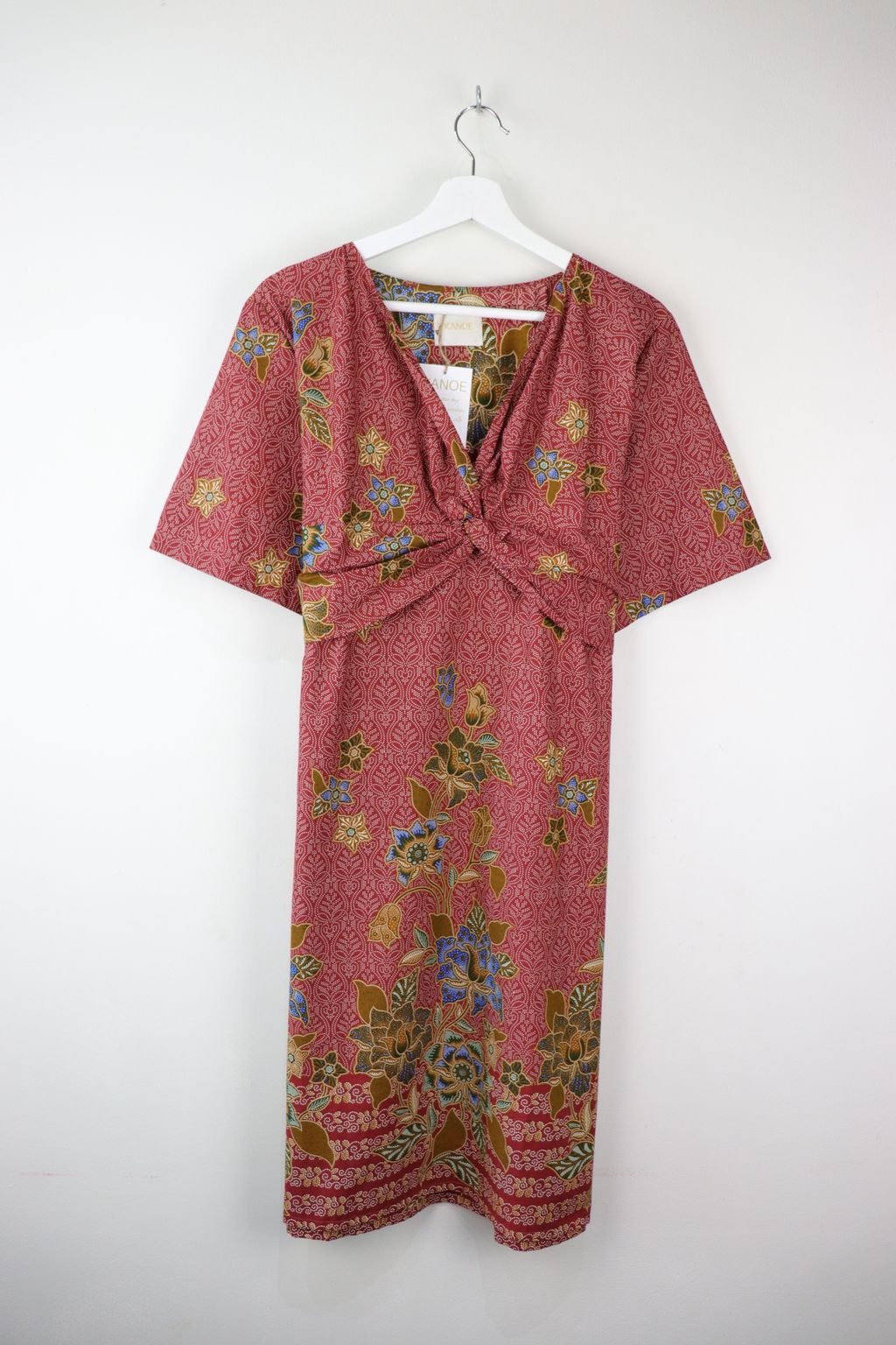 Has pockets at the sides and a tie to niche in at the waist accentuating the feminine shape.