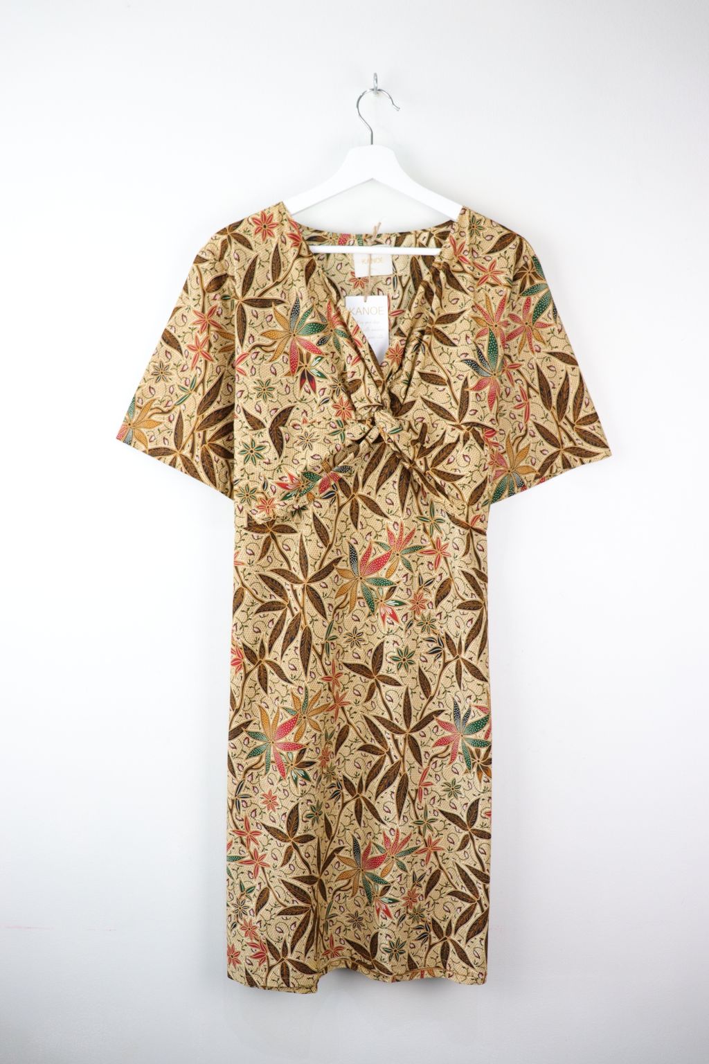 Has pockets at the sides and a tie to niche in at the waist accentuating the feminine shape.