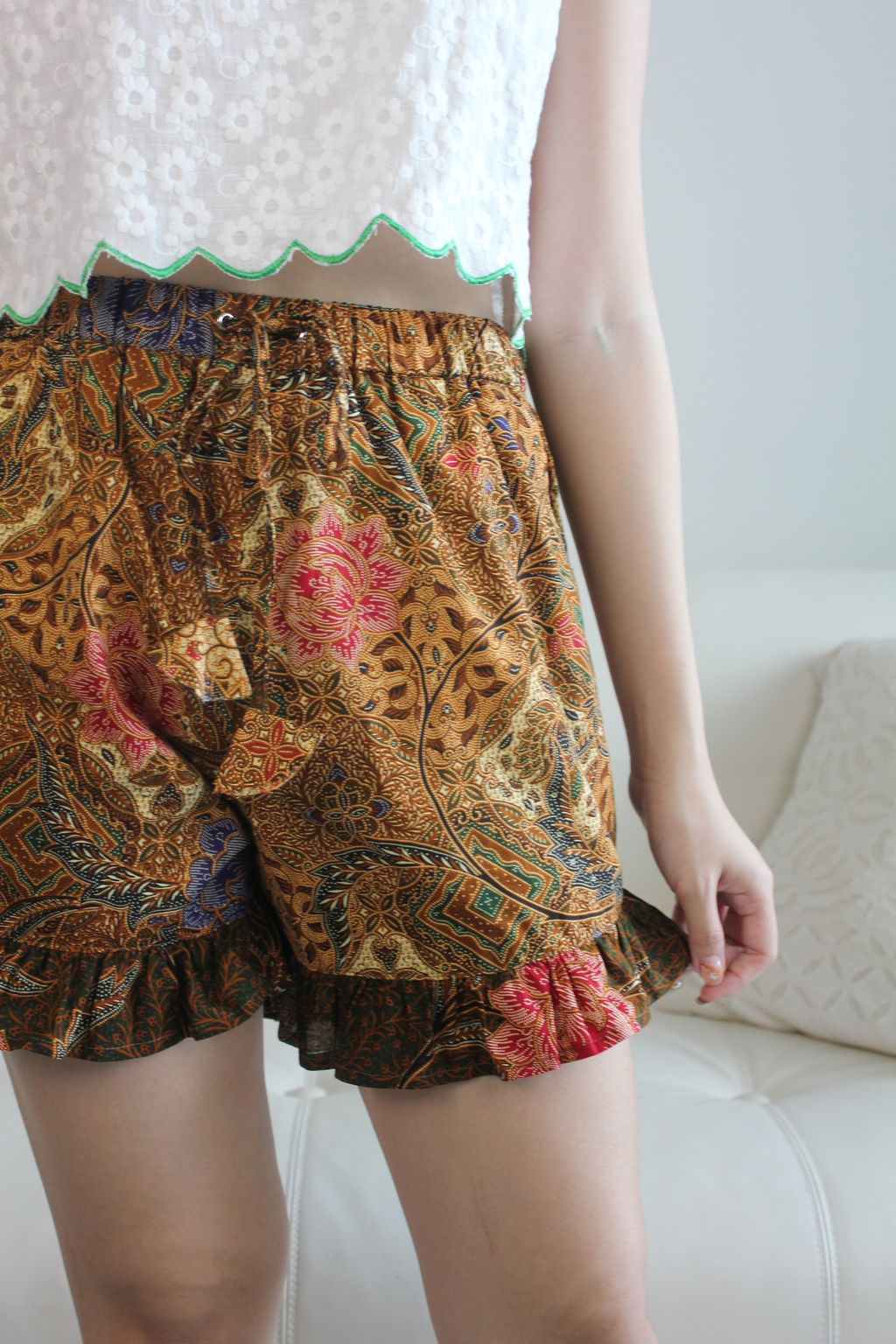 Your go to batik piece after work and on the weekends. These flirty frou shorts are so comfy and fun! Wear them to unwind and throw it in your bag for your next tropical getaway !