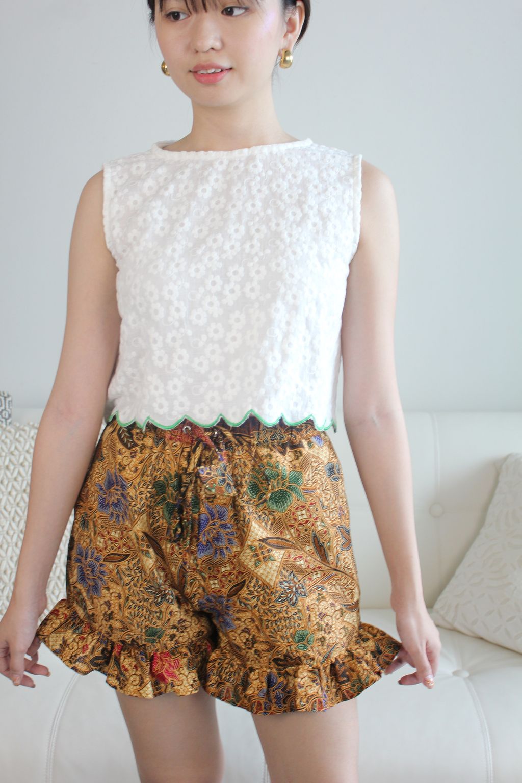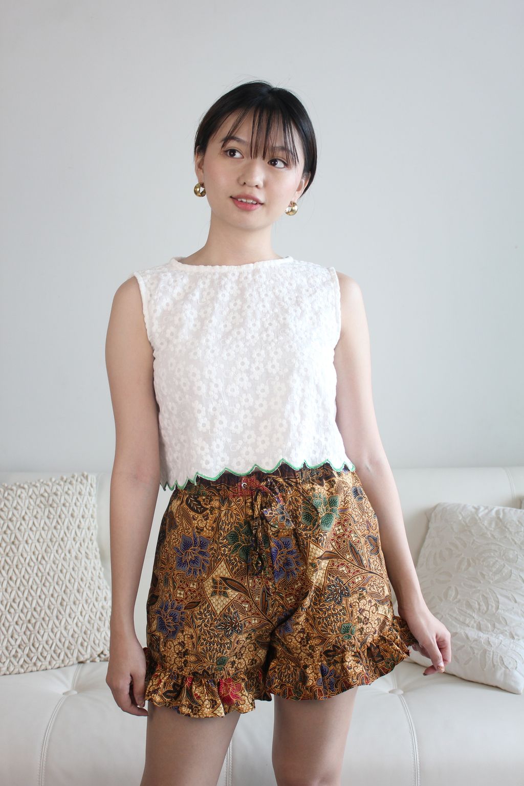 Your go to batik piece after work and on the weekends. These flirty frou shorts are so comfy and fun! Wear them to unwind and throw it in your bag for your next tropical getaway !