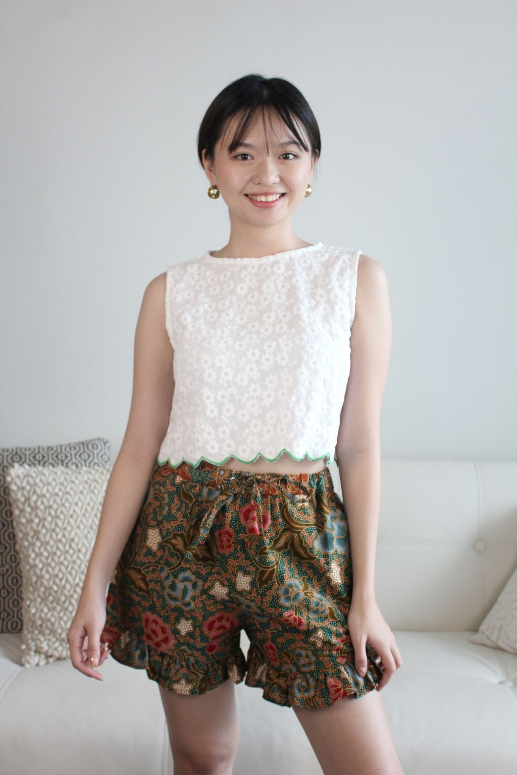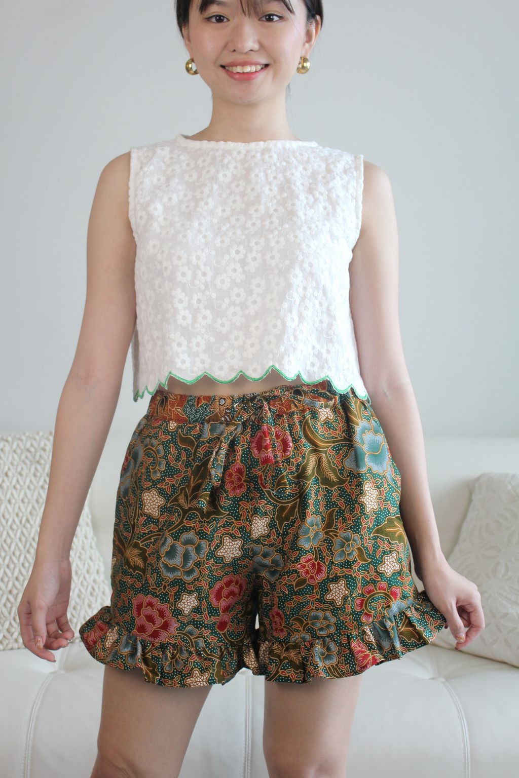 Your go to batik piece after work and on the weekends. These flirty frou shorts are so comfy and fun! Wear them to unwind and throw it in your bag for your next tropical getaway !