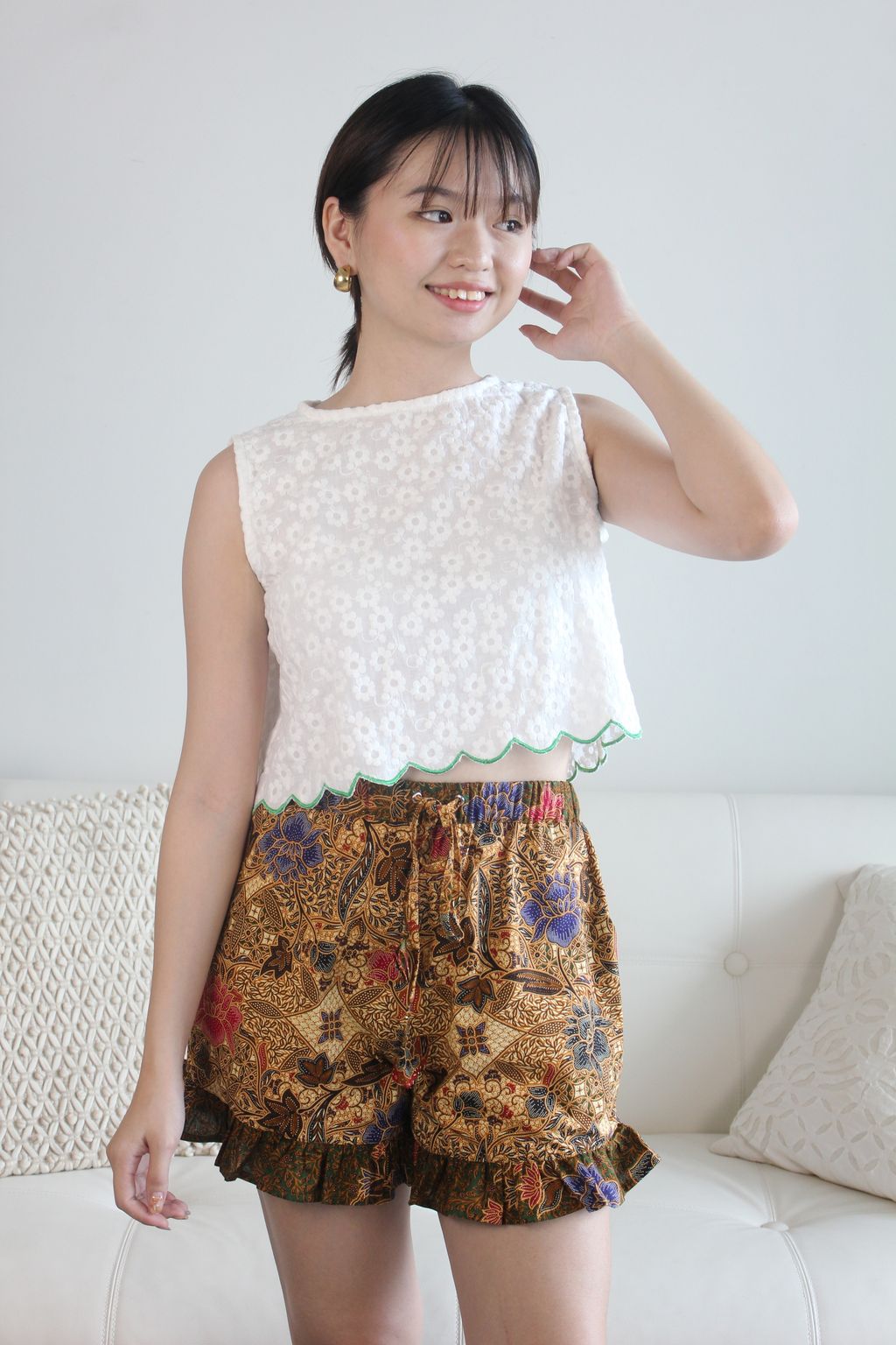 Your go to batik piece after work and on the weekends. These flirty frou shorts are so comfy and fun! Wear them to unwind and throw it in your bag for your next tropical getaway !