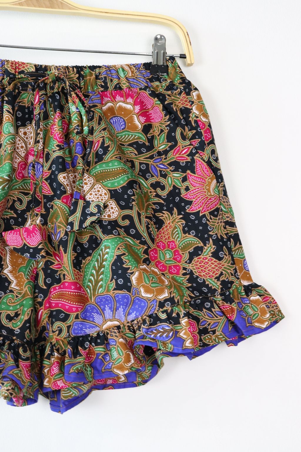 Your go to batik piece after work and on the weekends. These flirty frou shorts are so comfy and fun! Wear them to unwind and throw it in your bag for your next tropical getaway !