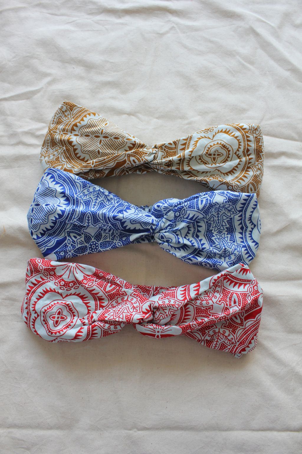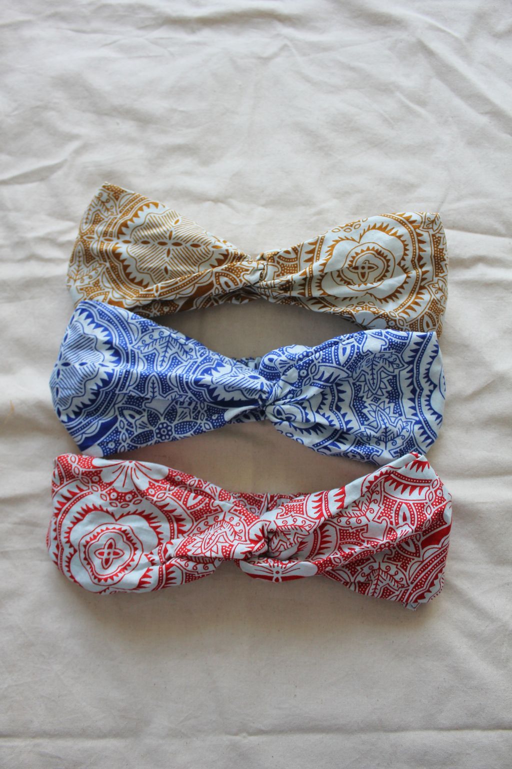 These are klassik twisted headbands adding a pop of batik to your everyday! They will fit a standard size head comfortably!
