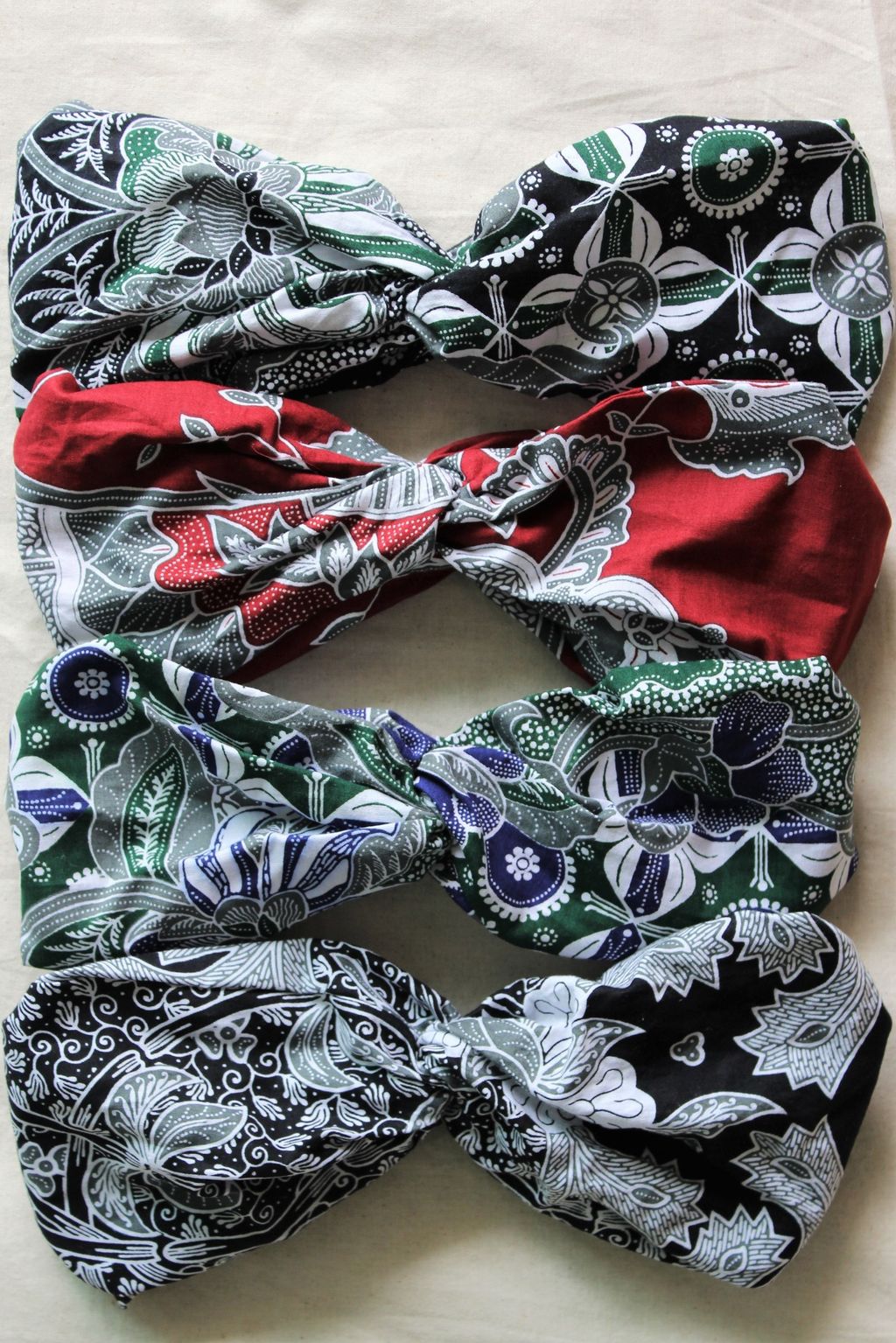 These are klassik twisted headbands adding a pop of batik to your everyday! They will fit a standard size head comfortably!