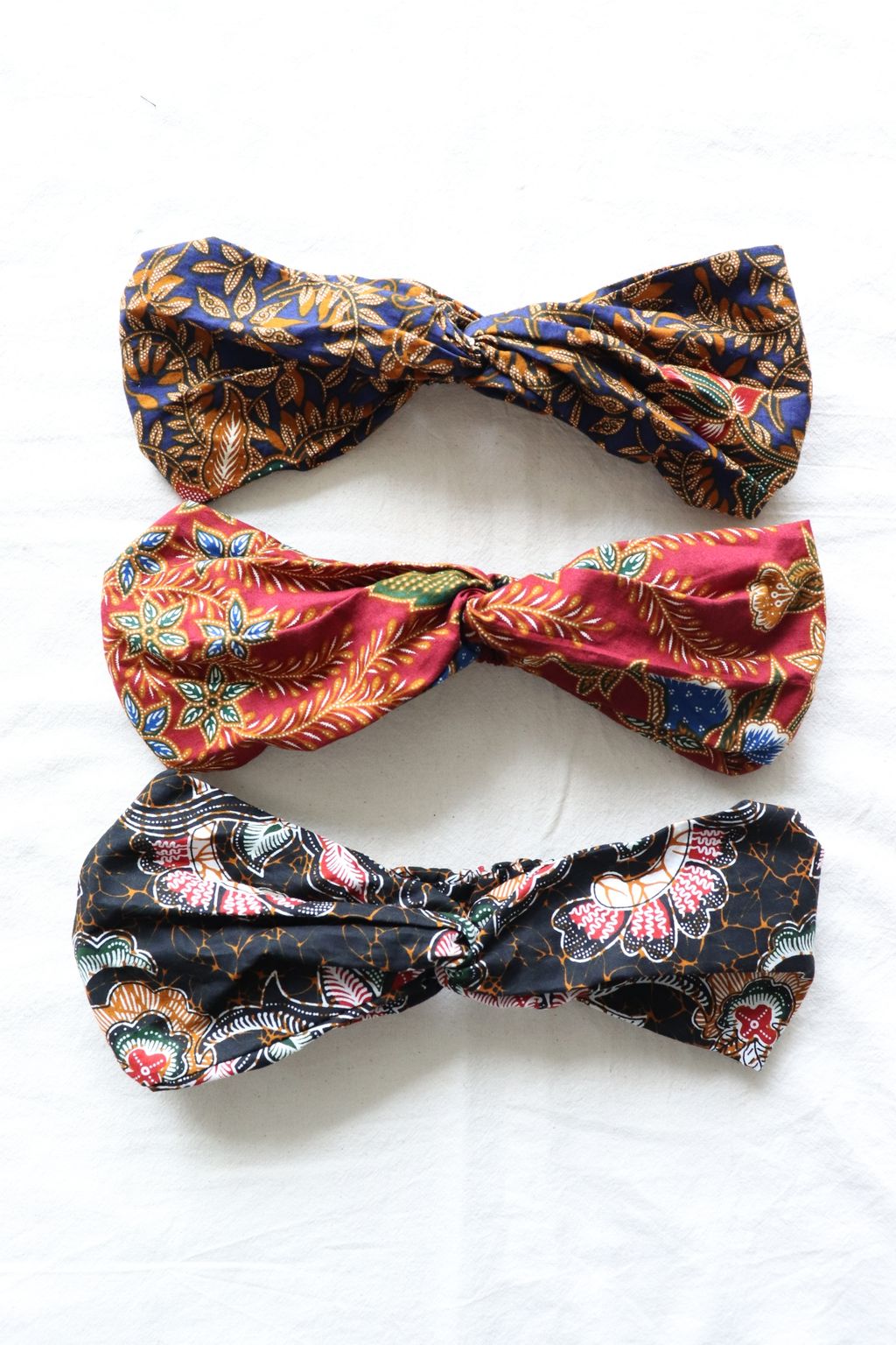 These are klassik twisted headbands adding a pop of batik to your everyday!