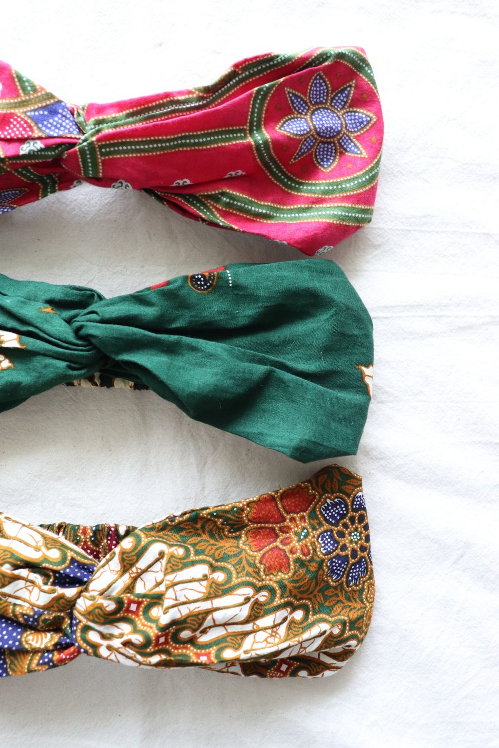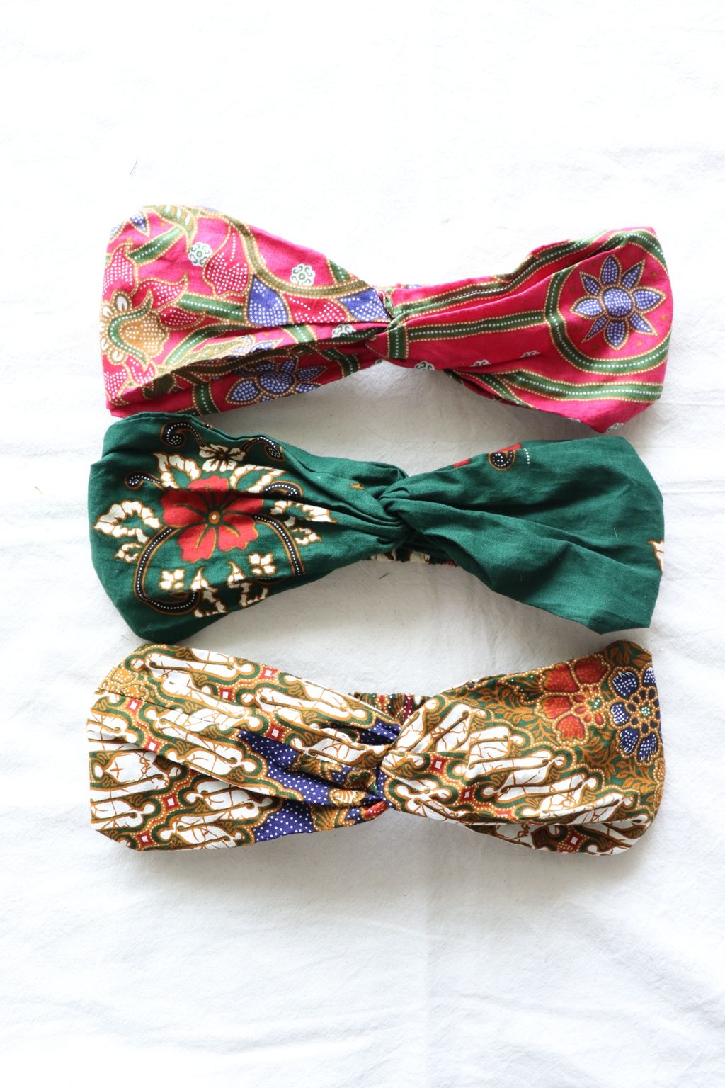 These are klassik twisted headbands adding a pop of batik to your everyday!