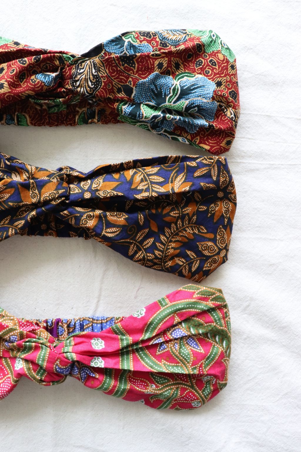 These are klassik twisted headbands adding a pop of batik to your everyday!