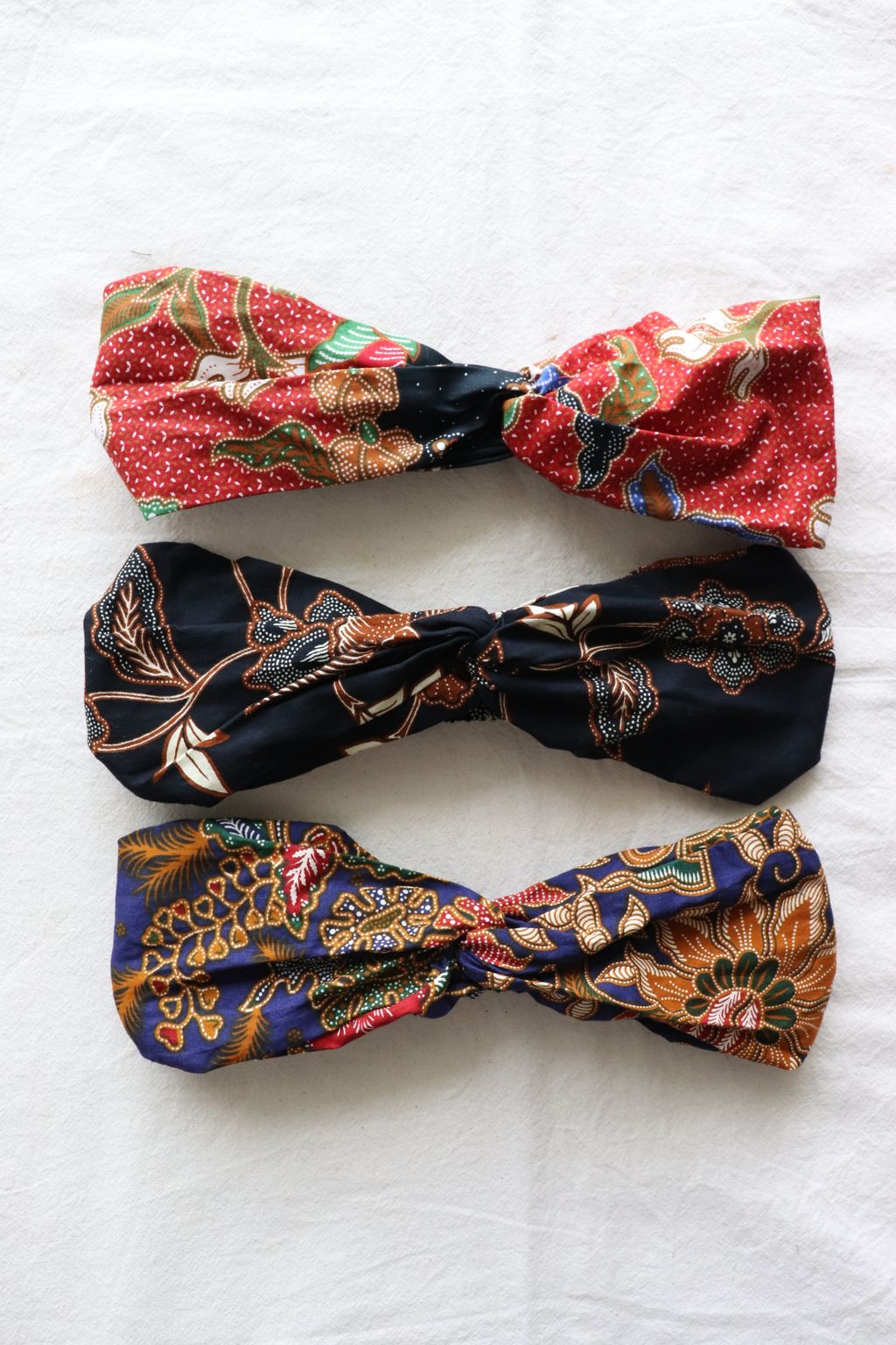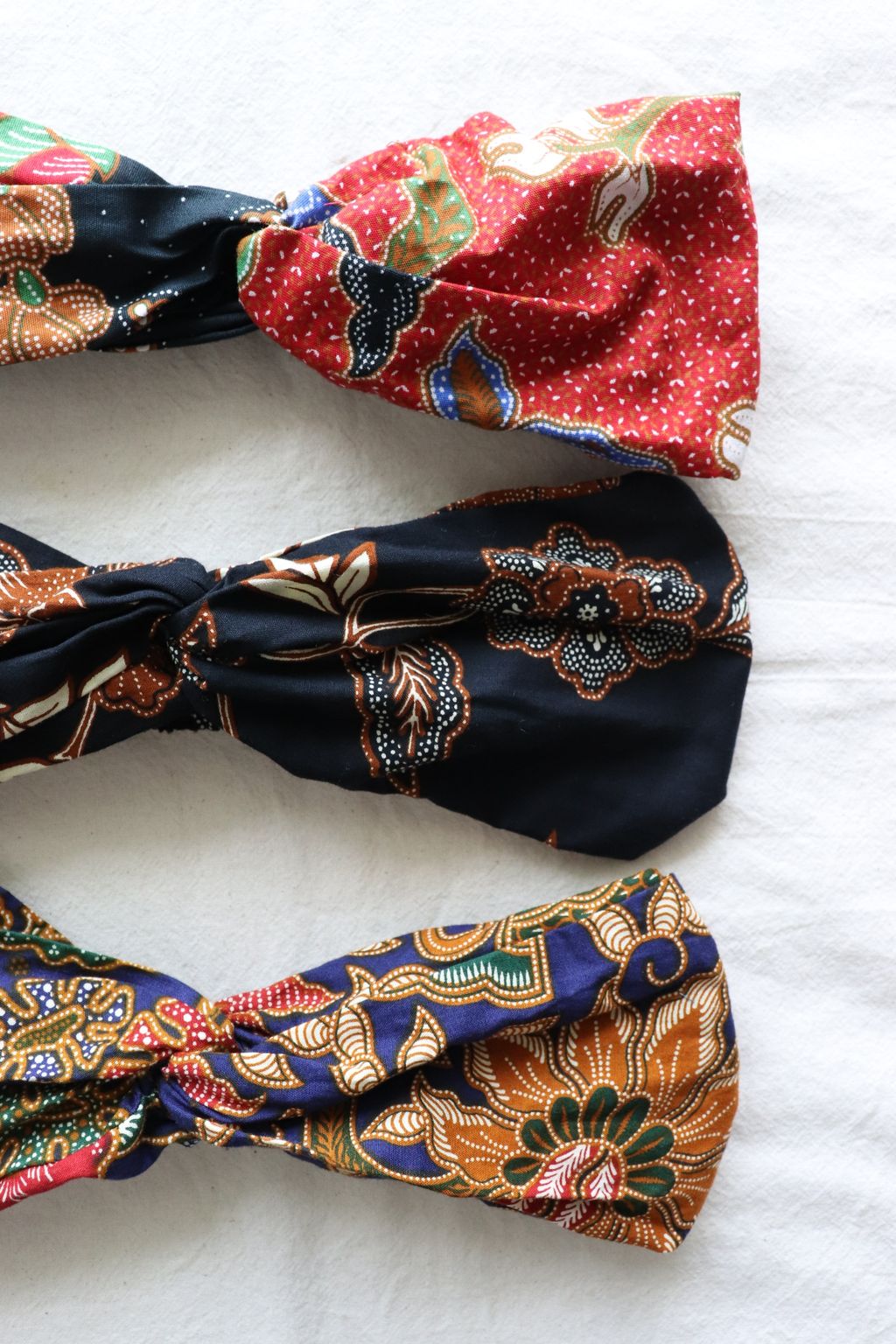 These are klassik twisted headbands adding a pop of batik to your everyday!