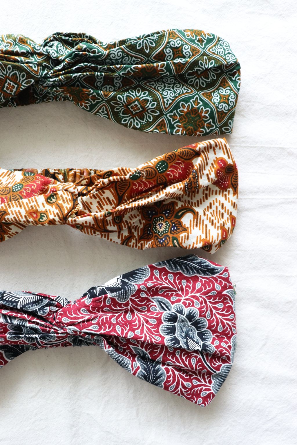 These are klassik twisted headbands adding a pop of batik to your everyday!