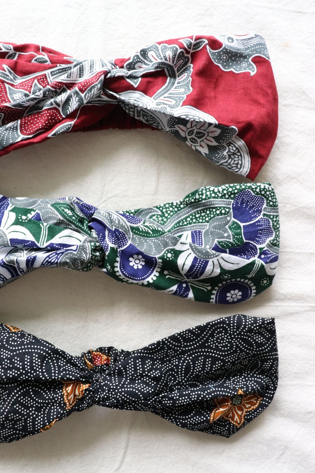These are klassik twisted headbands adding a pop of batik to your everyday!