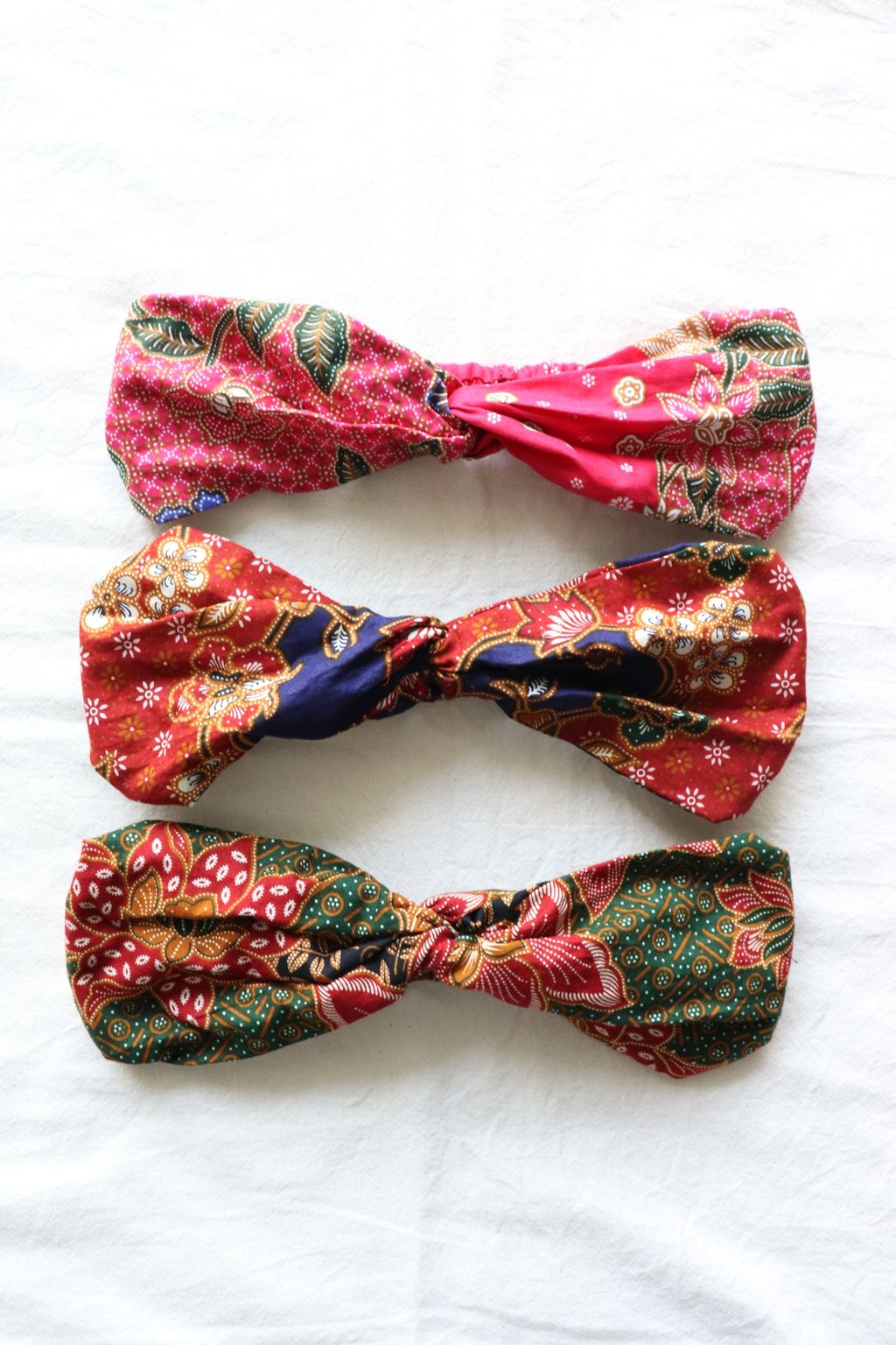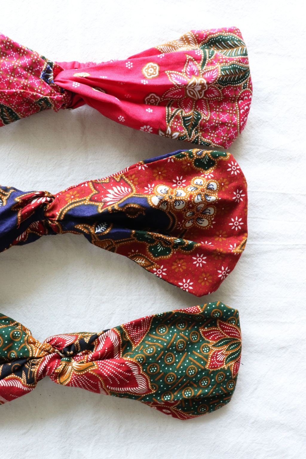 These are klassik twisted headbands adding a pop of batik to your everyday!