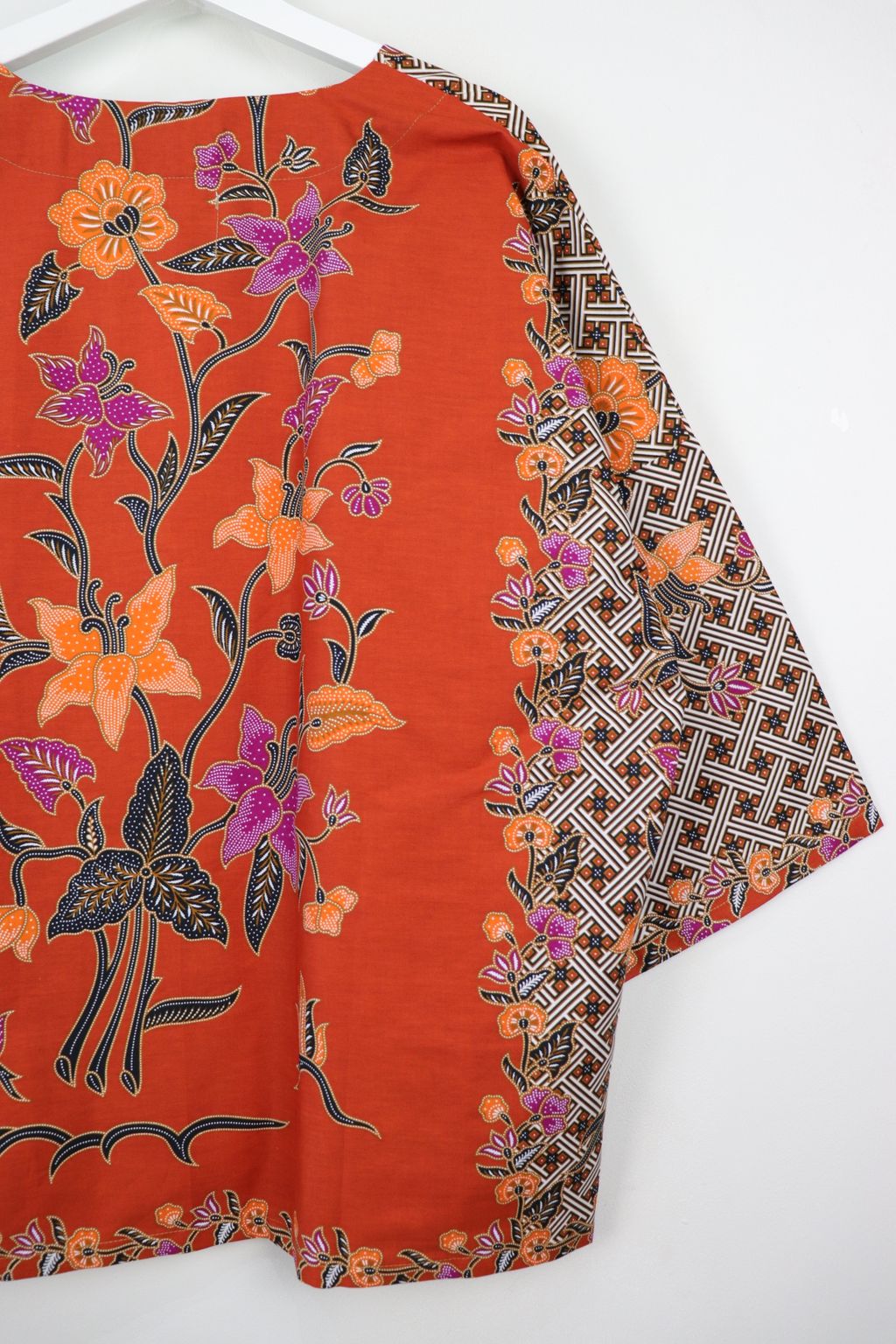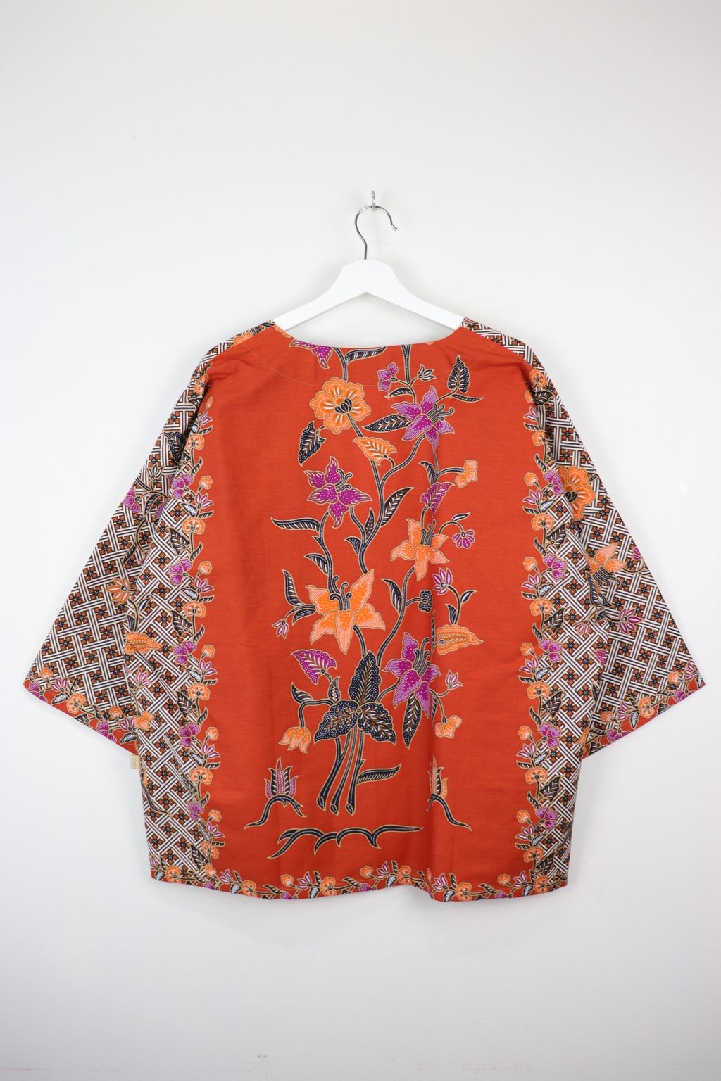 When we are stuck at home wearing a basic spaghetti strap top at home and the door bell rings, throw on this kimono before heading out to collect that parcel. Or if your boss calls you last minute for a zoom call. Throw on this batik kimono!