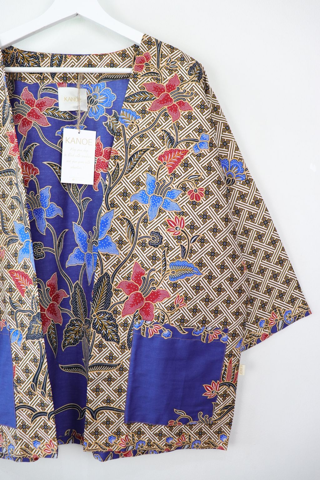 When we are stuck at home wearing a basic spaghetti strap top at home and the door bell rings, throw on this kimono before heading out to collect that parcel. Or if your boss calls you last minute for a zoom call. Throw on this batik kimono!