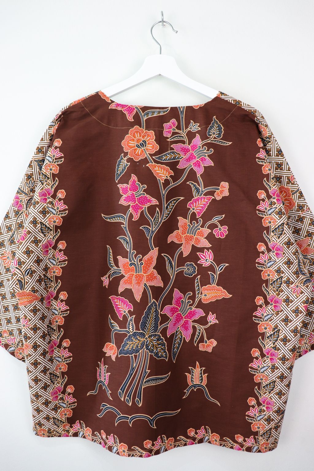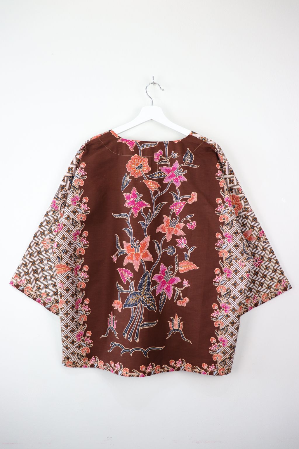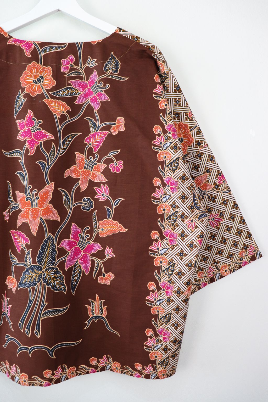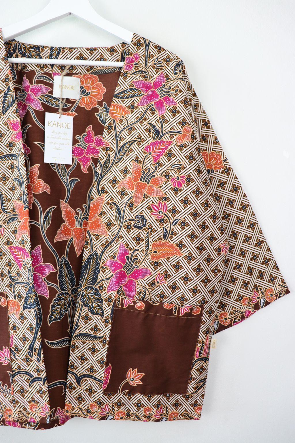 When we are stuck at home wearing a basic spaghetti strap top at home and the door bell rings, throw on this kimono before heading out to collect that parcel. Or if your boss calls you last minute for a zoom call. Throw on this batik kimono!
