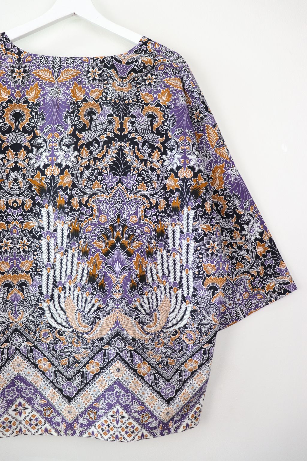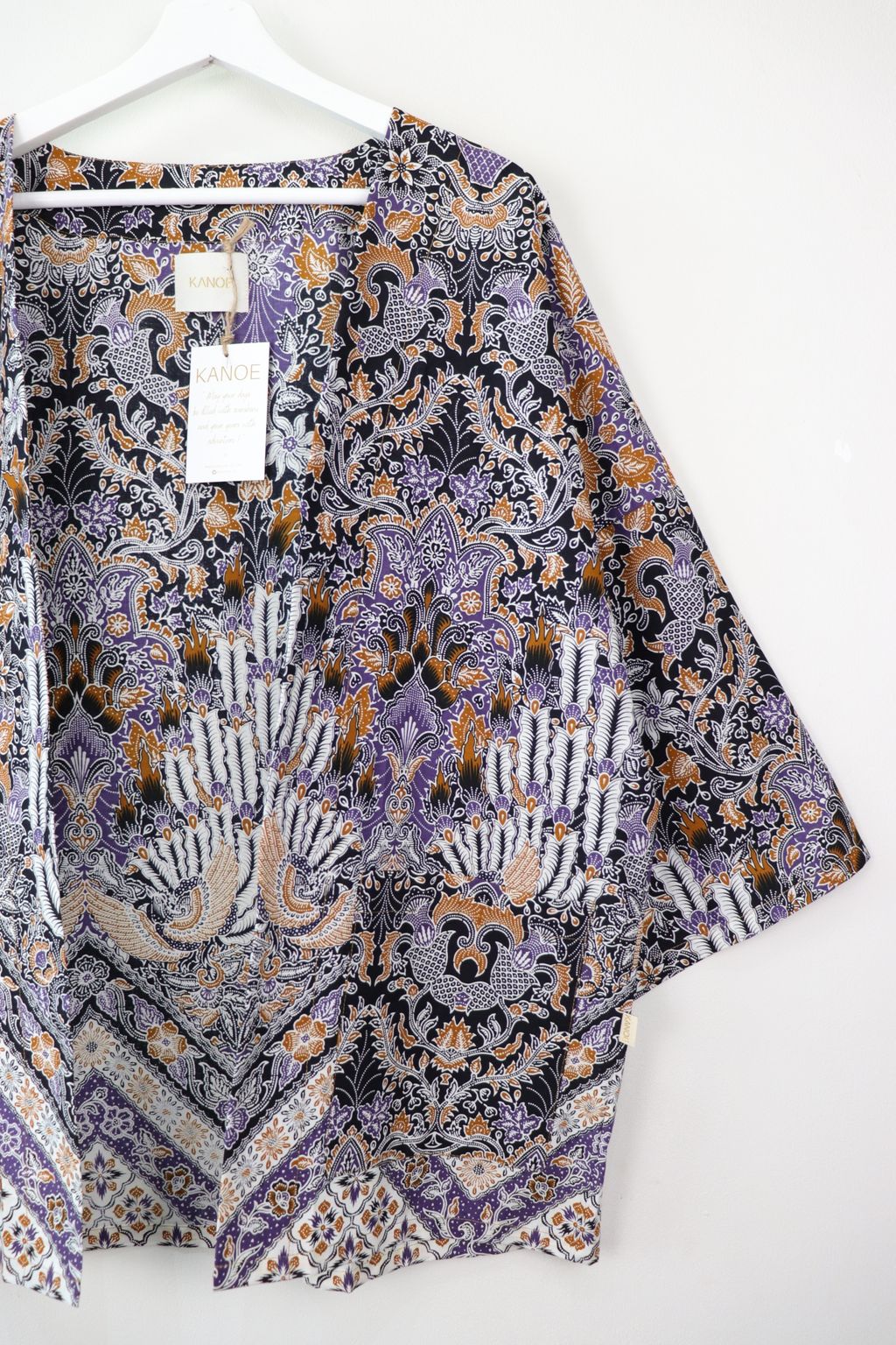 When we are stuck at home wearing a basic spaghetti strap top at home and the door bell rings, throw on this kimono before heading out to collect that parcel. Or if your boss calls you last minute for a zoom call. Throw on this batik kimono!