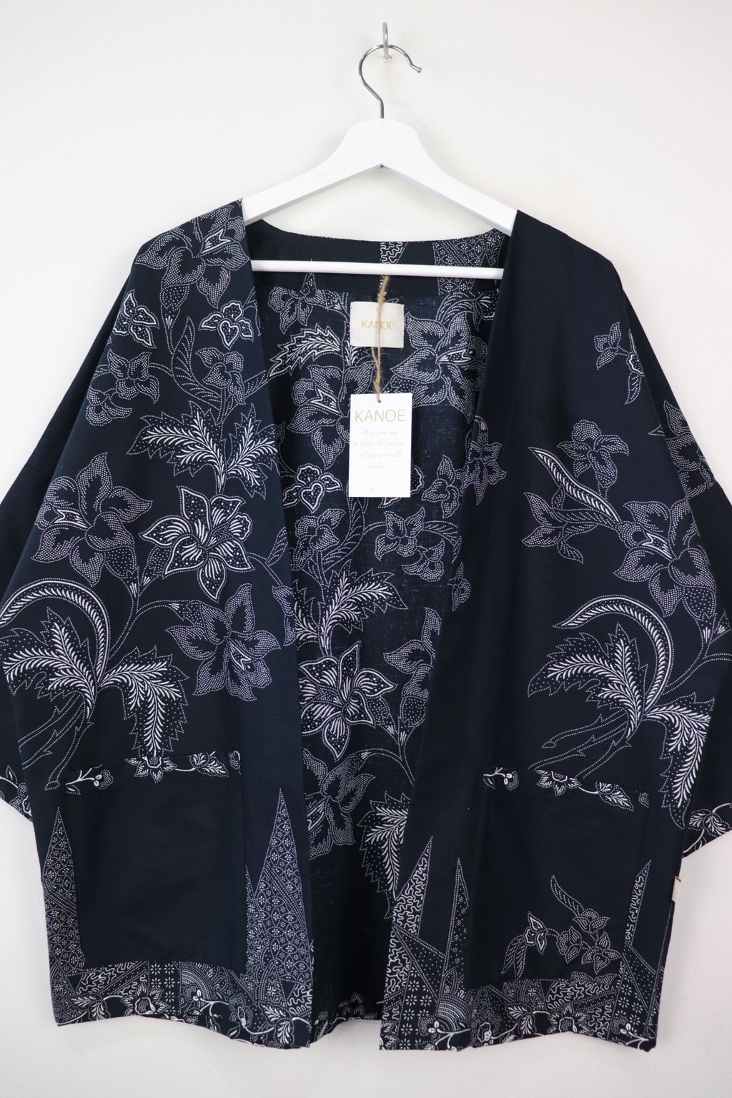 When we are stuck at home wearing a basic spaghetti strap top at home and the door bell rings, throw on this kimono before heading out to collect that parcel. Or if your boss calls you last minute for a zoom call. Throw on this batik kimono!